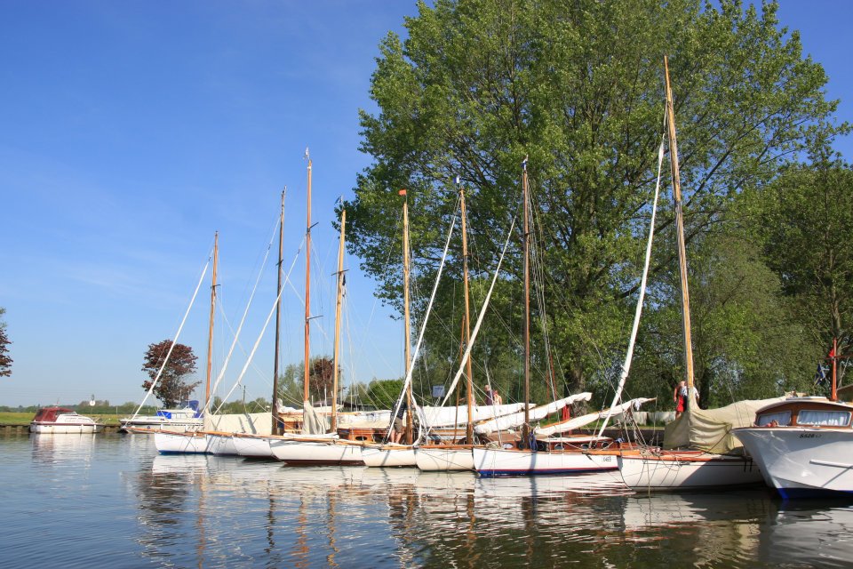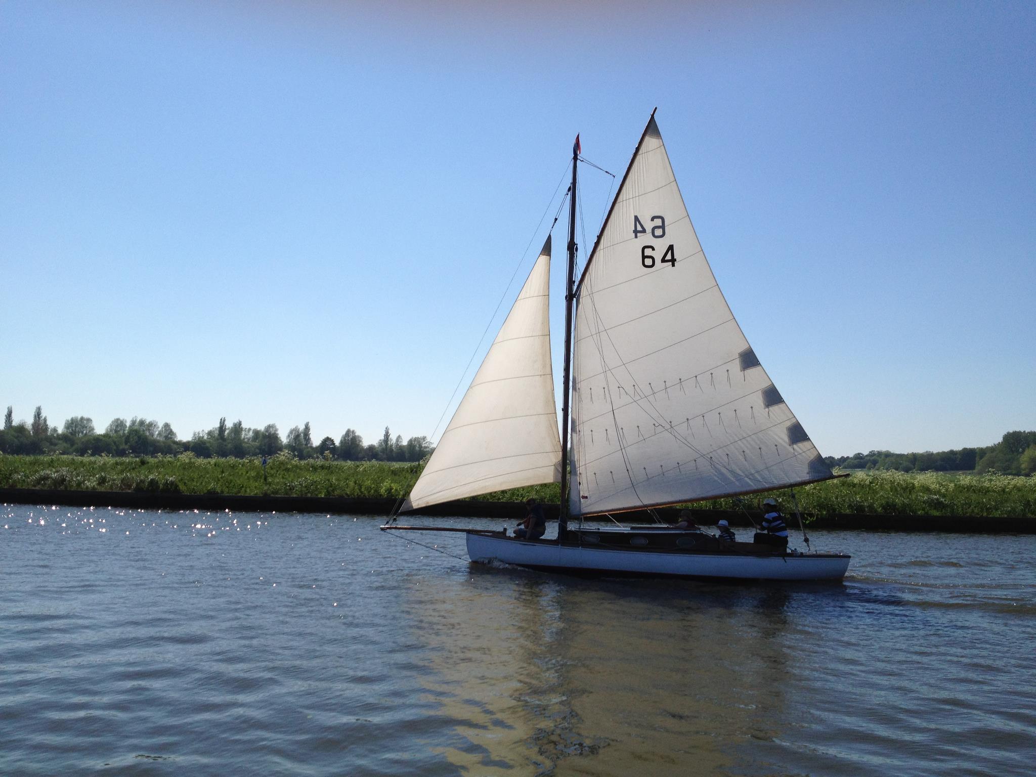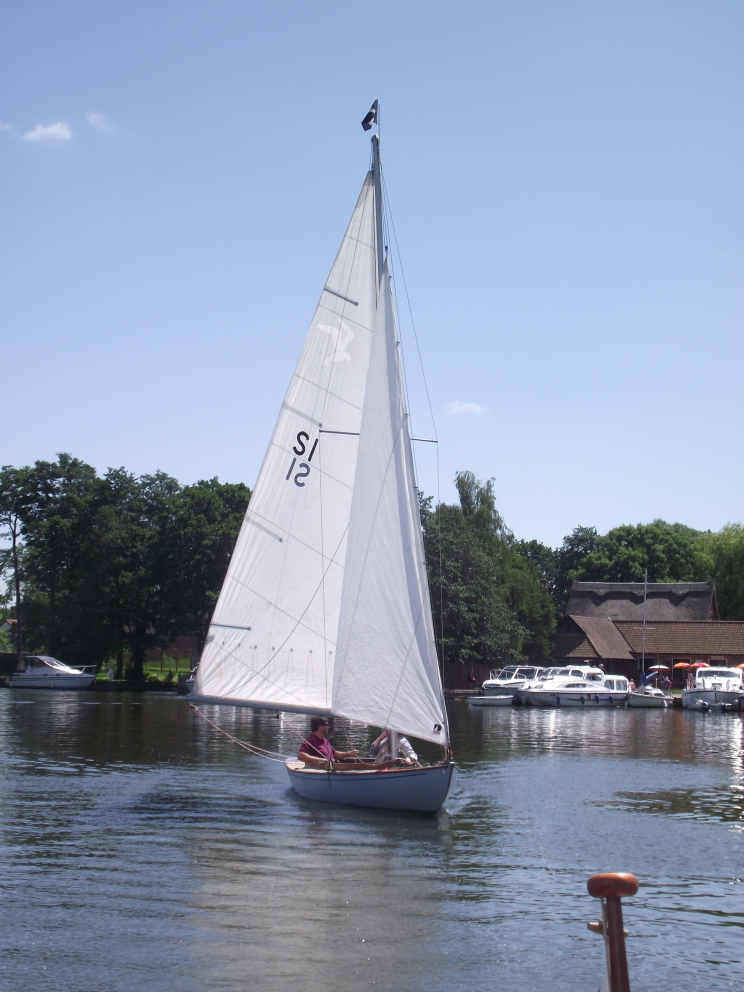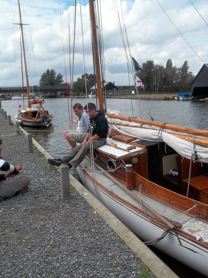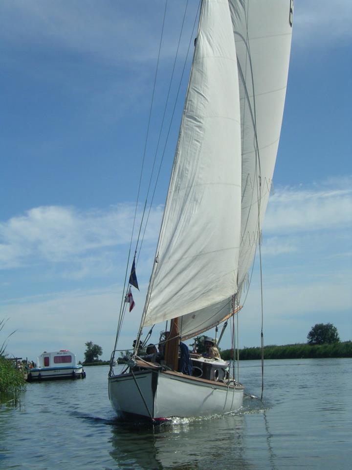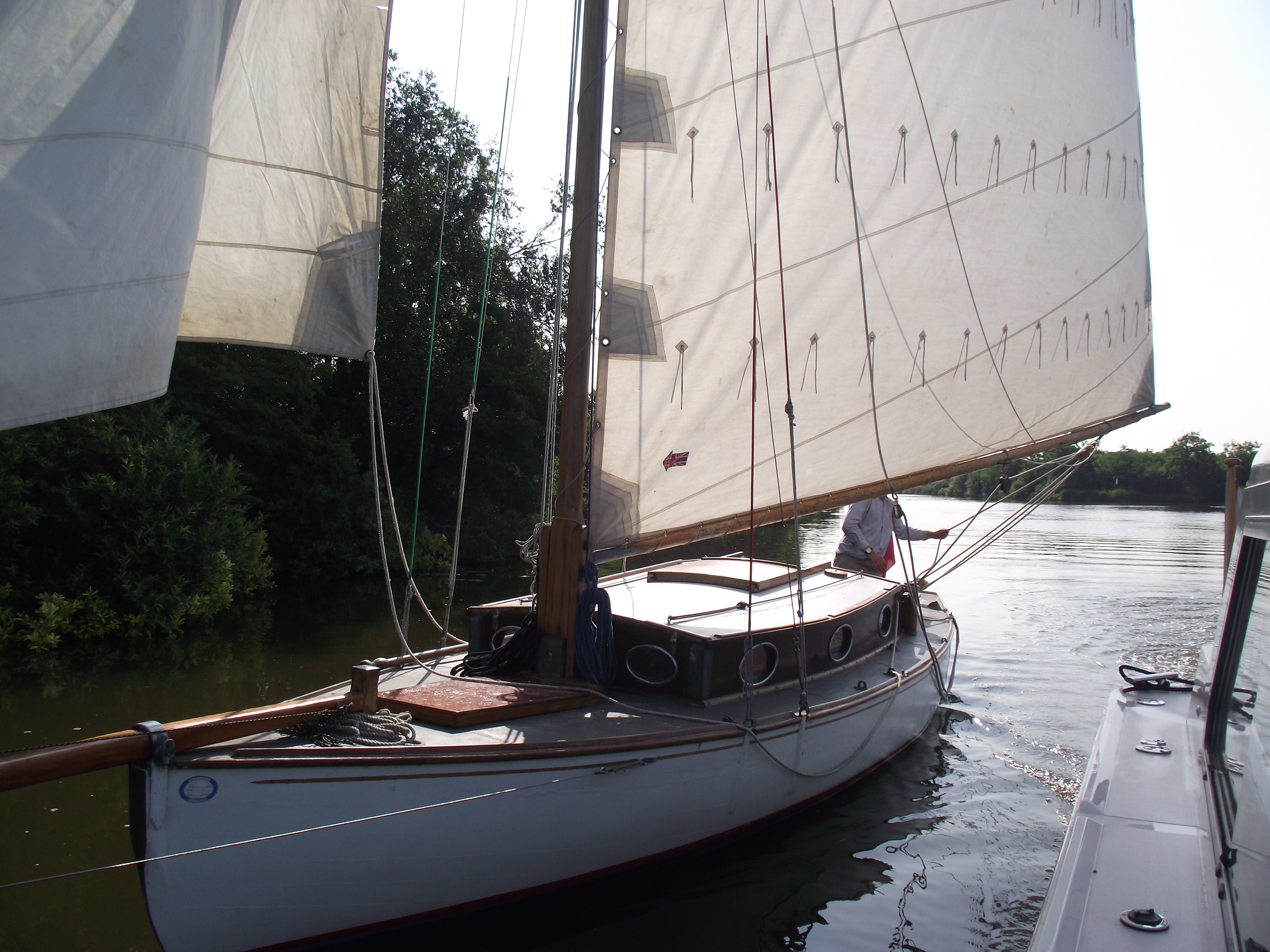 Whilst enjoyable, the predominant memory of the 2012 cruise is that as we were tacking into Beccles in light airs, our 1951 boom decided to snap directly above the mainsheet blocks. This swiftly became a fairly stark lesson in how the mainsail on a Broads yacht can (and will) become uncontrollable – and how quickly a jib that’s sheeted in can push you into the bank, HARD.