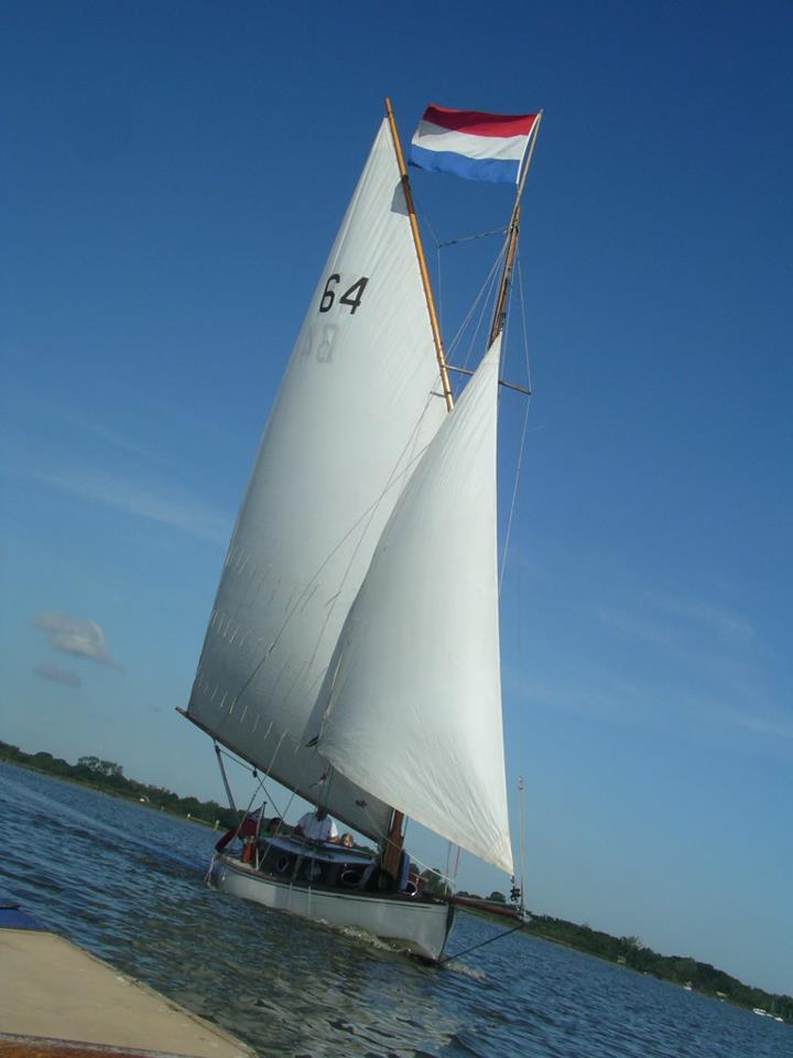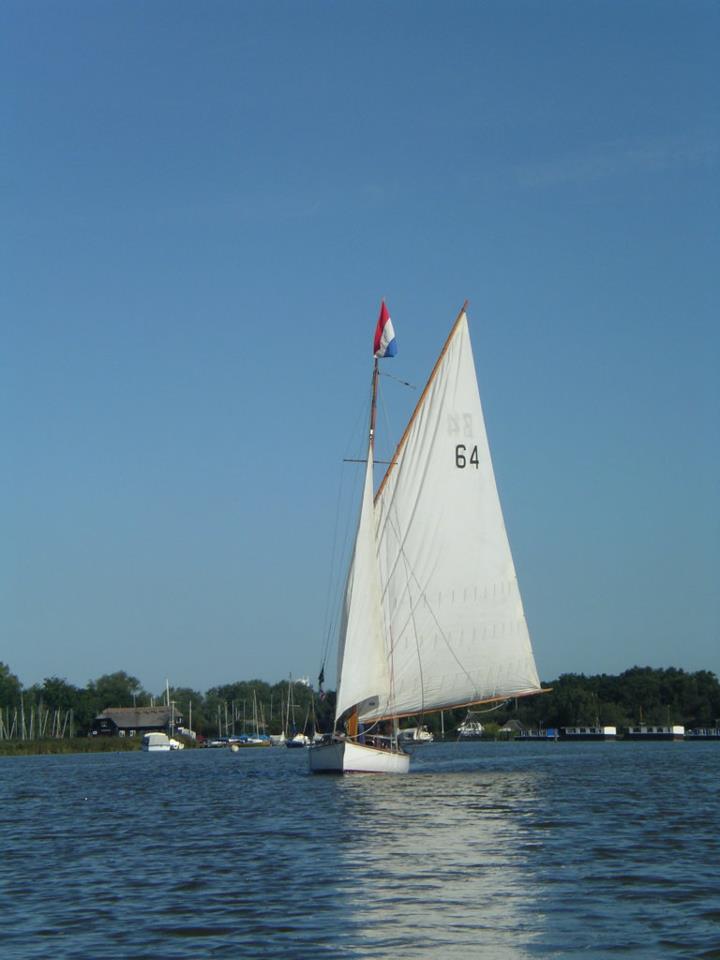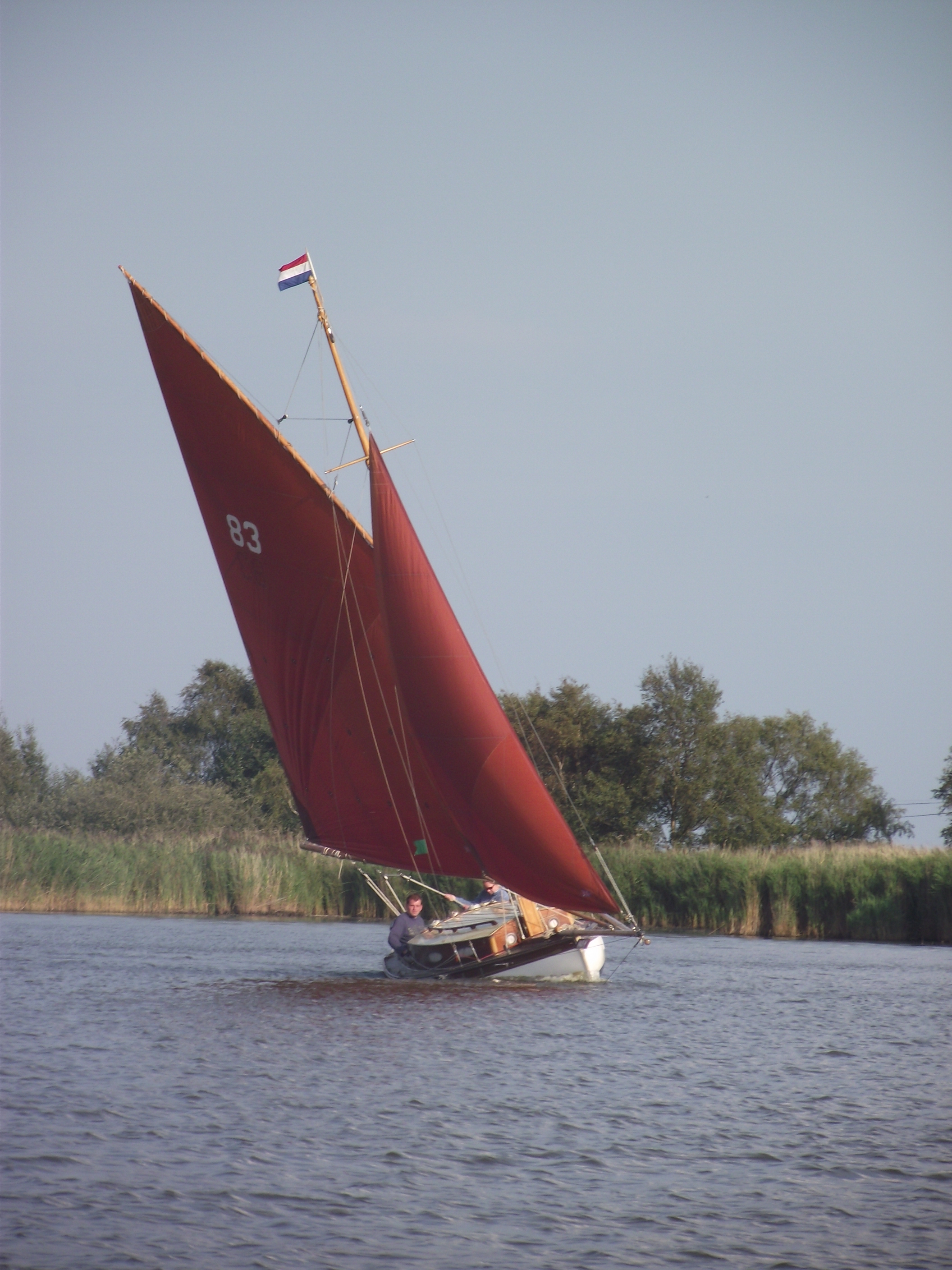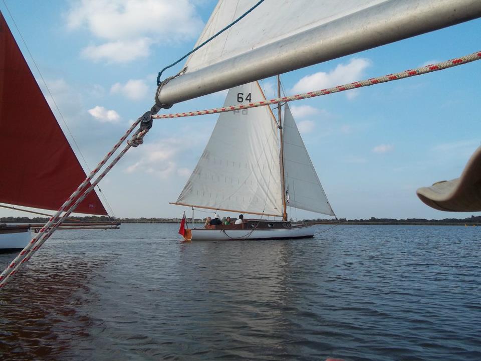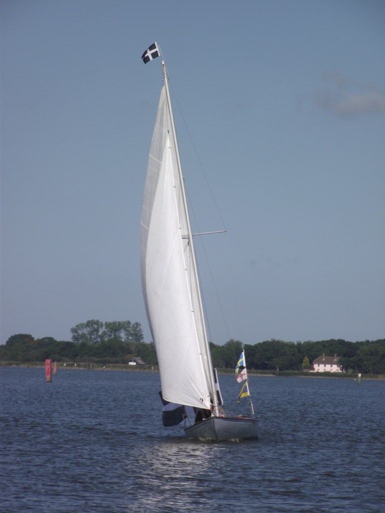 Once on the broad itself, the sea breeze did appear (finally!) & allowed us some decent long tacks with Mr B helping the jib over. Keeping pace with ‘Corsair’ though was a very sprightly dinghy – known as a bugle – it looked nippy!