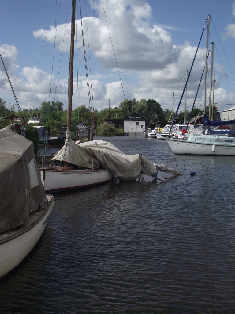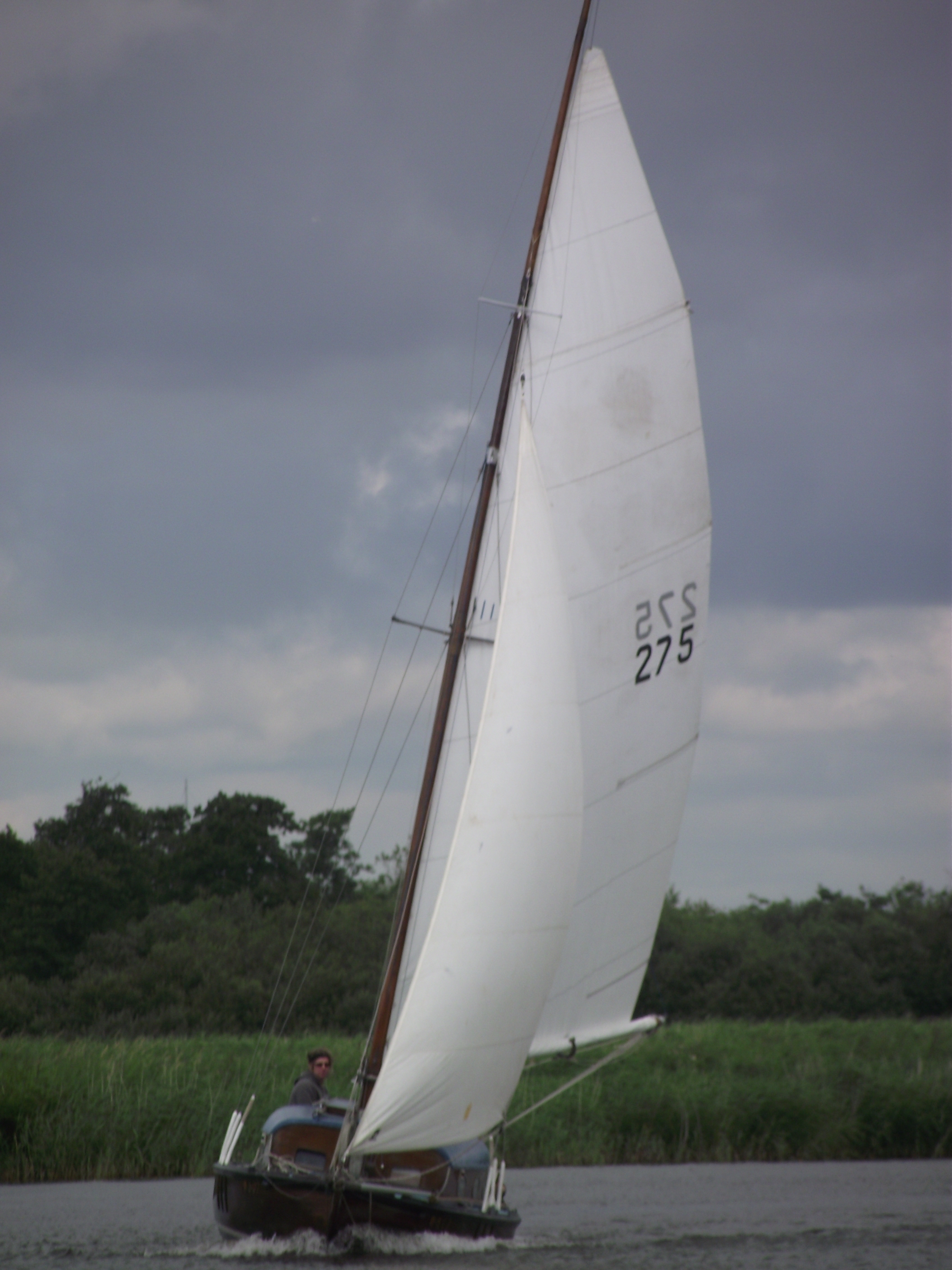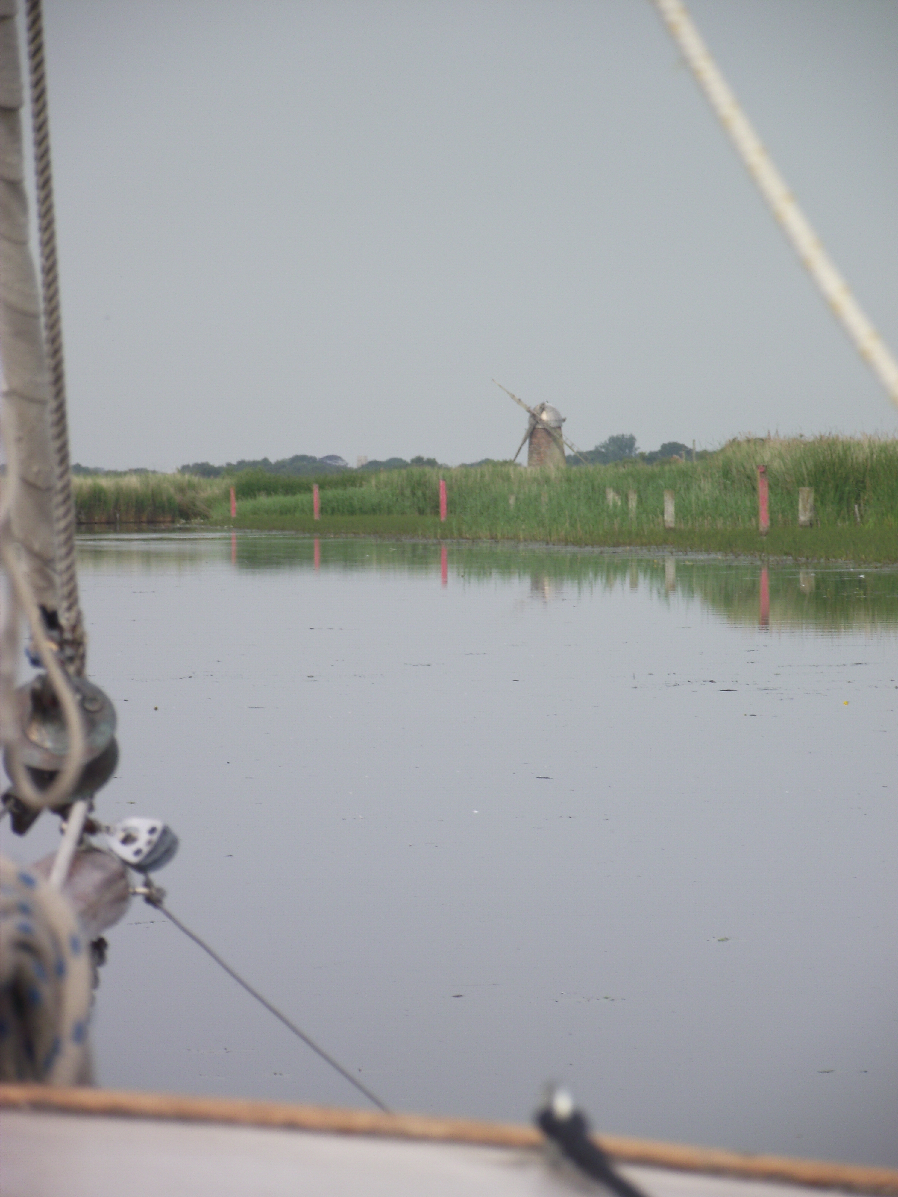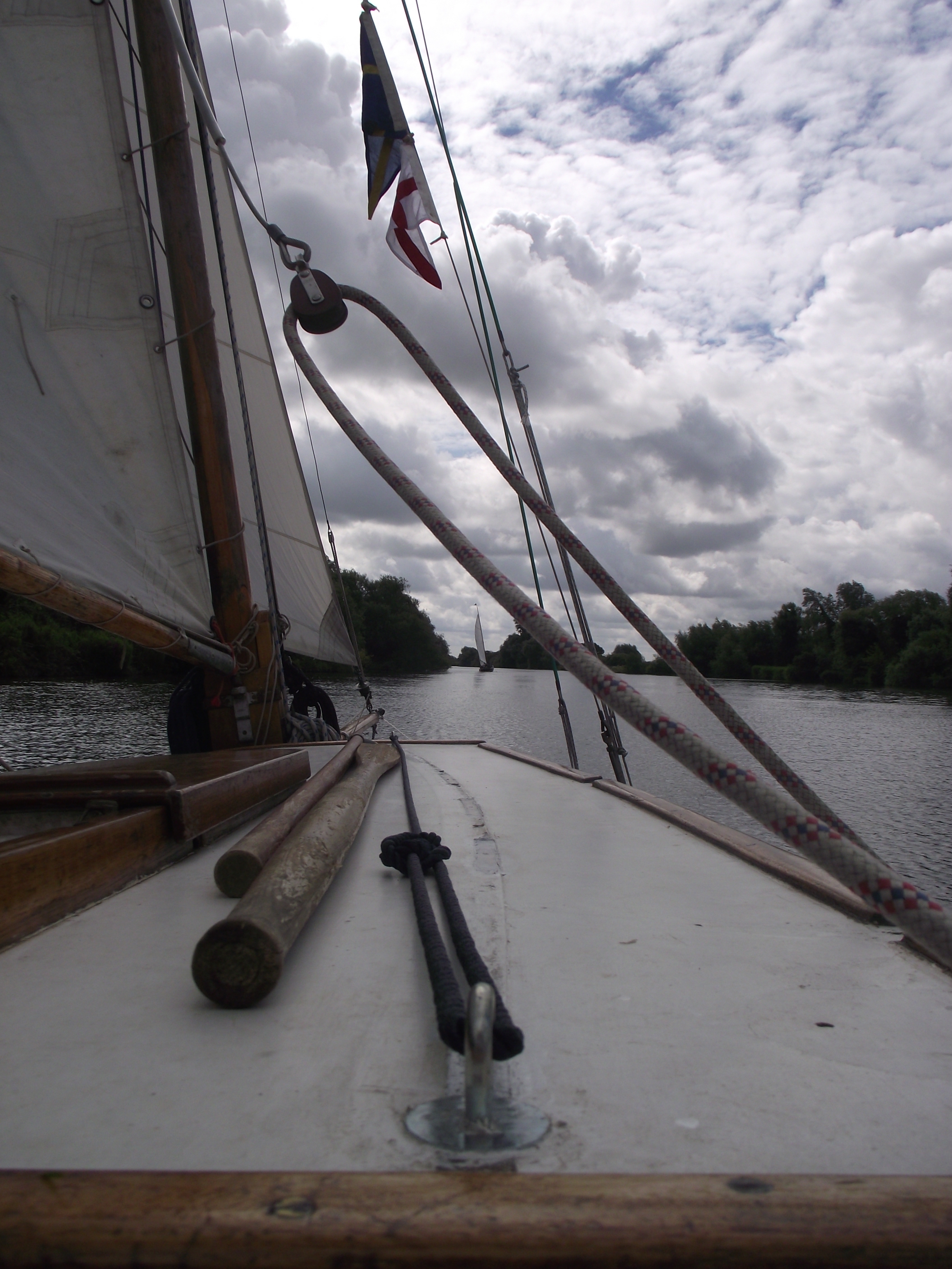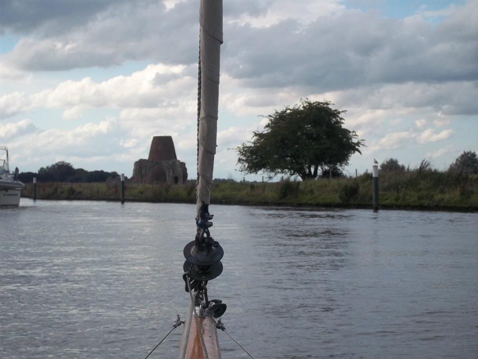 Leaving Potter with a double reefed mainsail proved a sensible decision, as before the arrival of yet another rain shower – some strong gusts forced us into rigging the backstays & praying… once at Cold Harbour however we eased onto a broad reach that lasted until Acle.