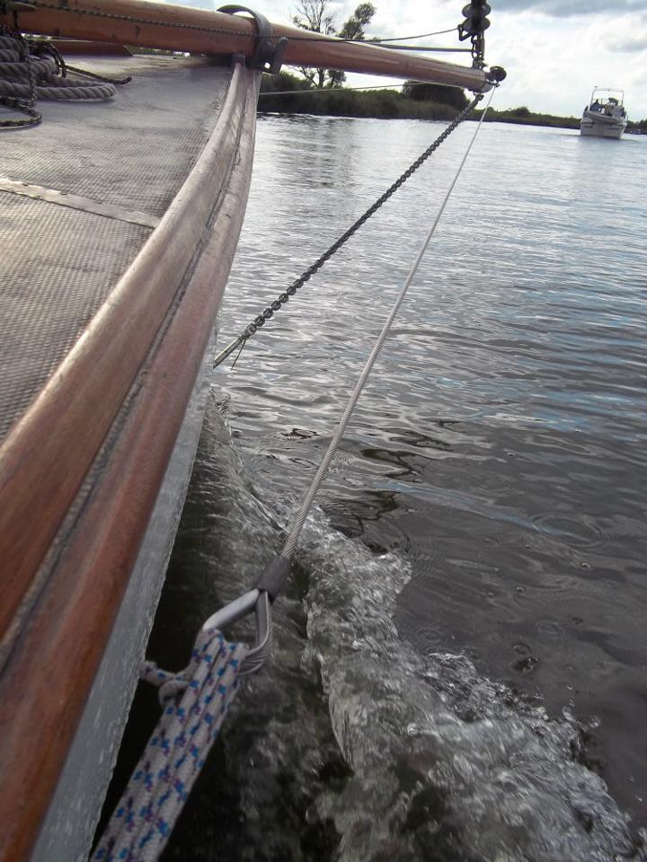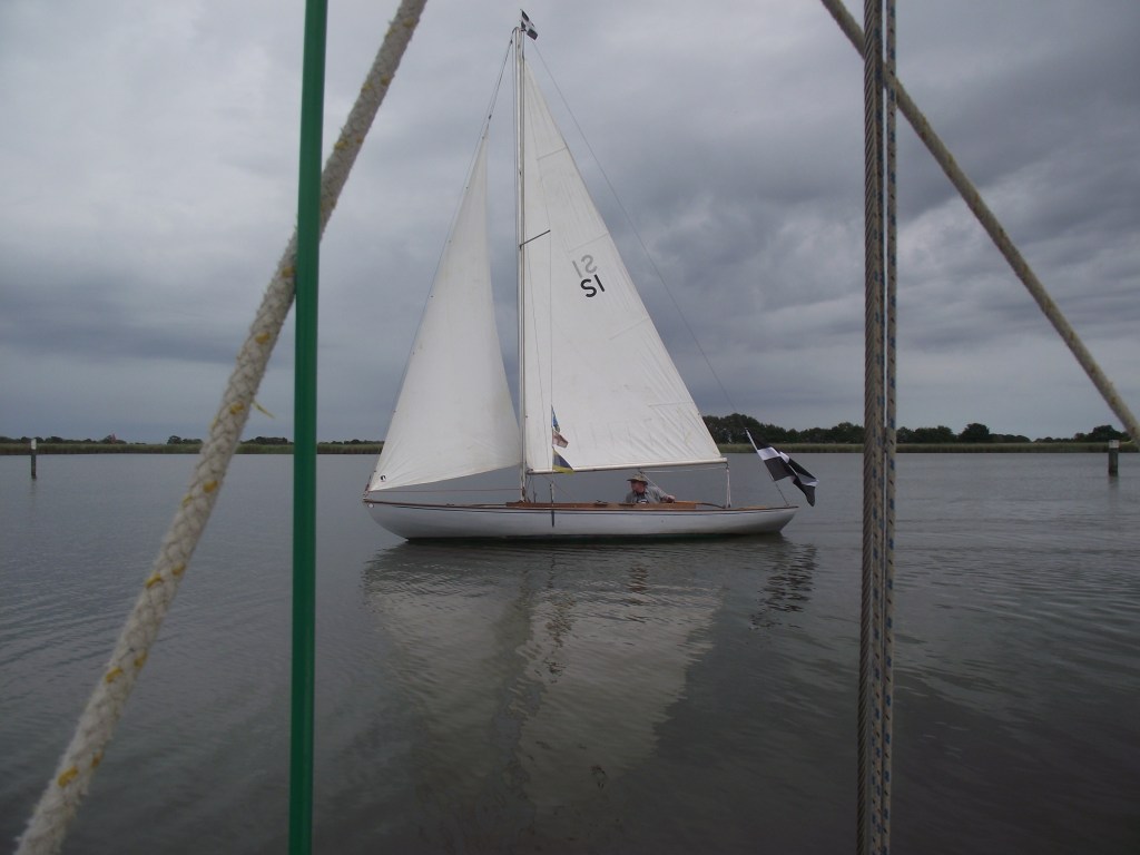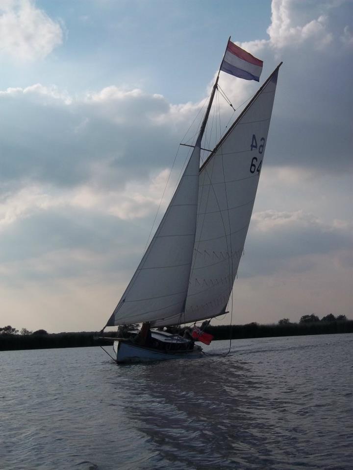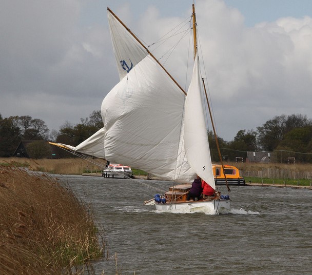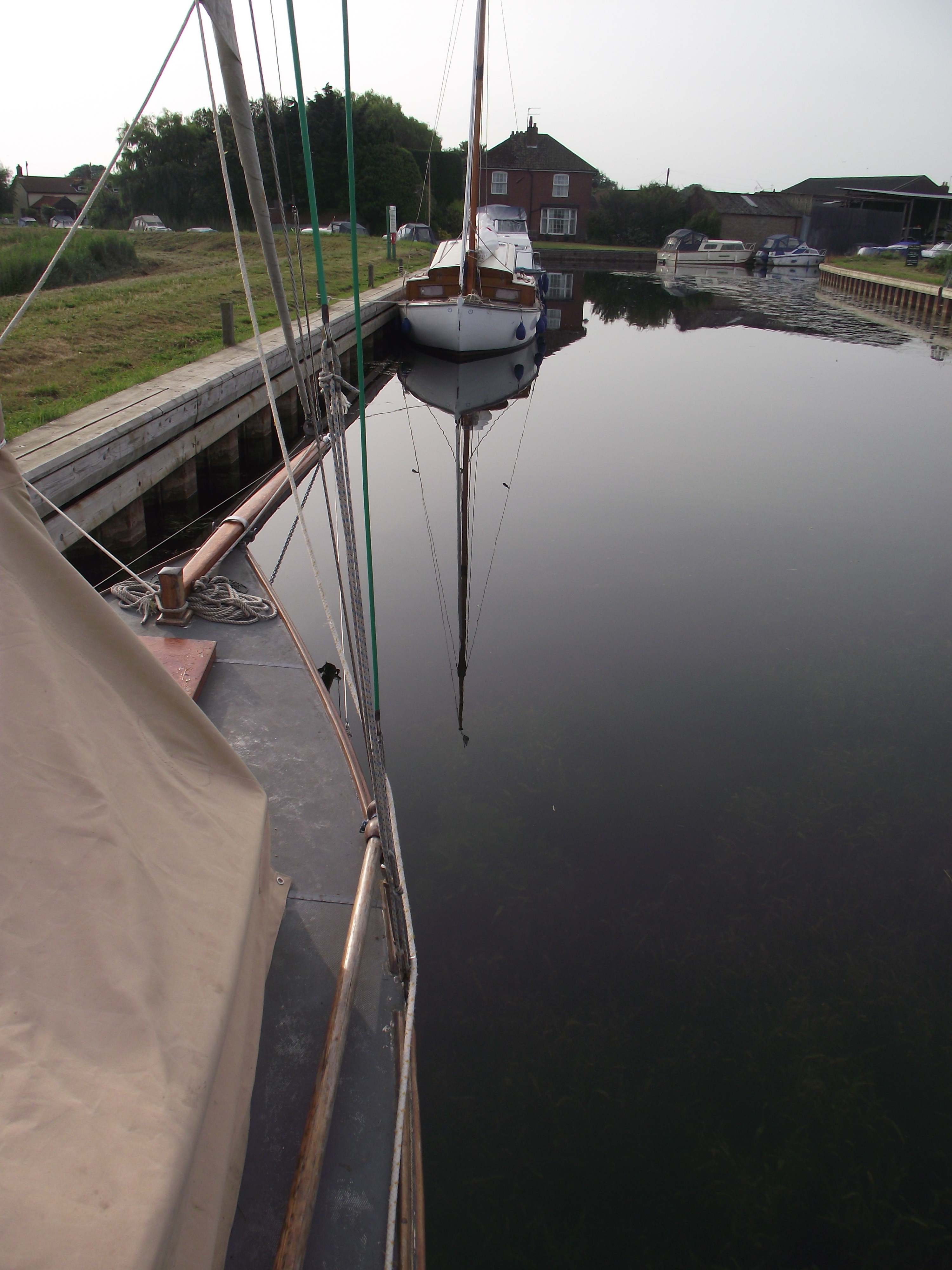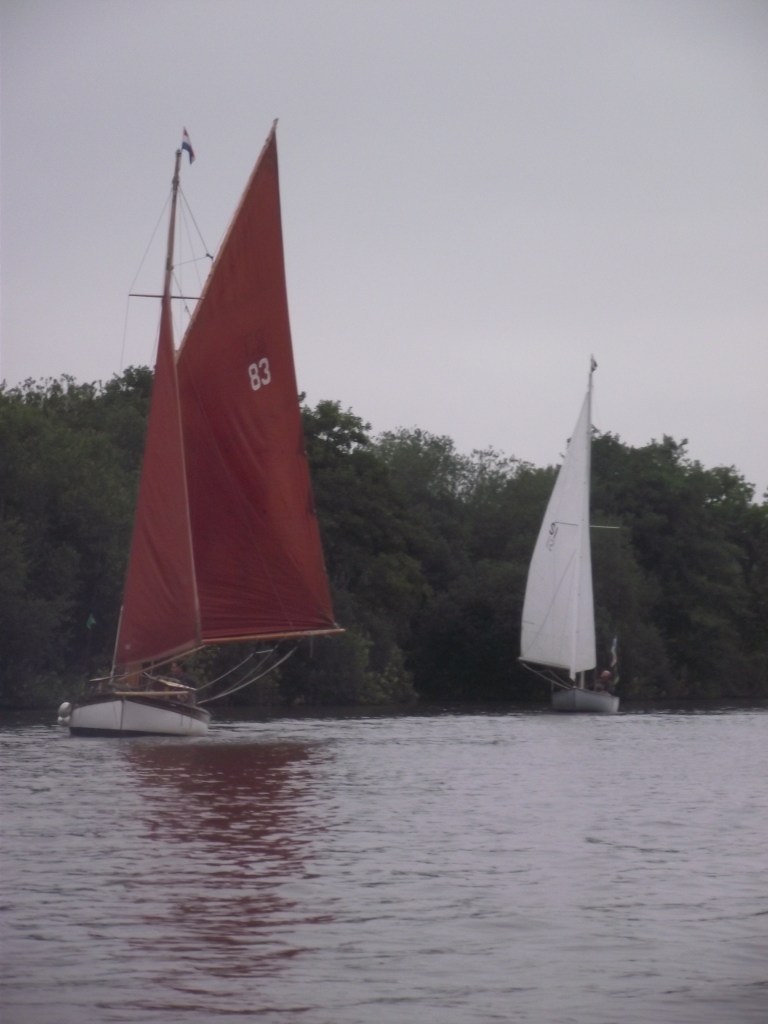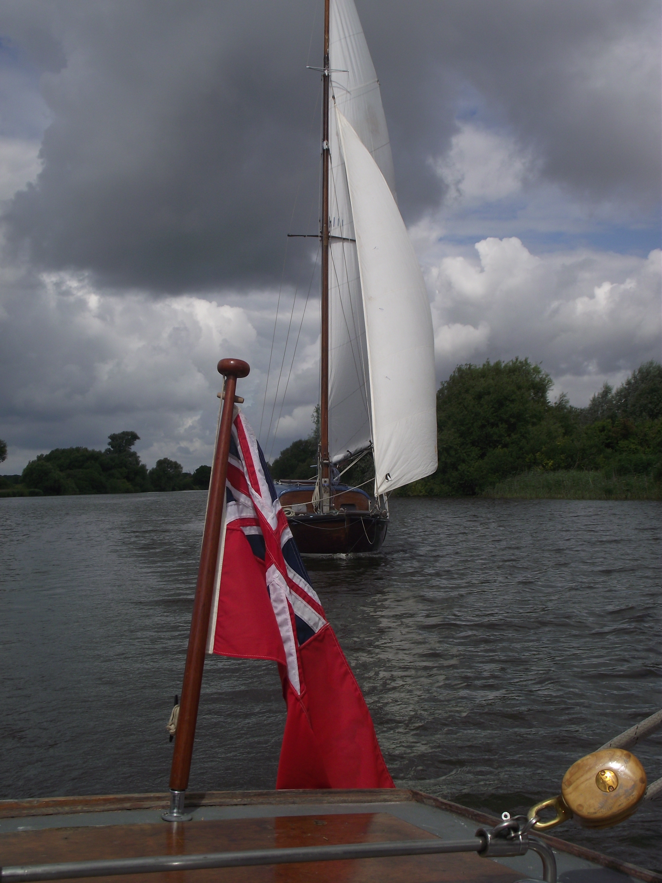 Leaving Potter with a double reefed mainsail proved a sensible decision, as before the arrival of yet another rain shower – some strong gusts forced us into rigging the backstays & praying… once at Cold Harbour however we eased onto a broad reach that lasted until Acle.