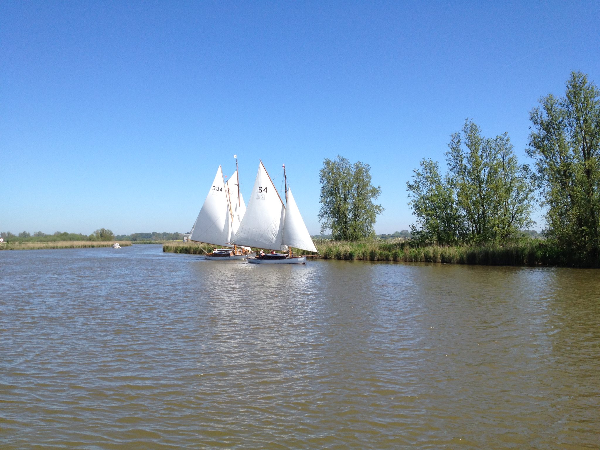 In retrospect, catching ‘Polly’ in Kendal dyke wasn’t out best plan, so with much spilling of wind we waited until Simon kindly sailed into the reeds allowing us a ‘gap’ to get past. Much to their annoyance, we also then stormed past a hire boat, tailgated the local bin lorry (it’s a barge running up/down Potter) & scattered several canoeists like startled ducks before we moored at the bridge.