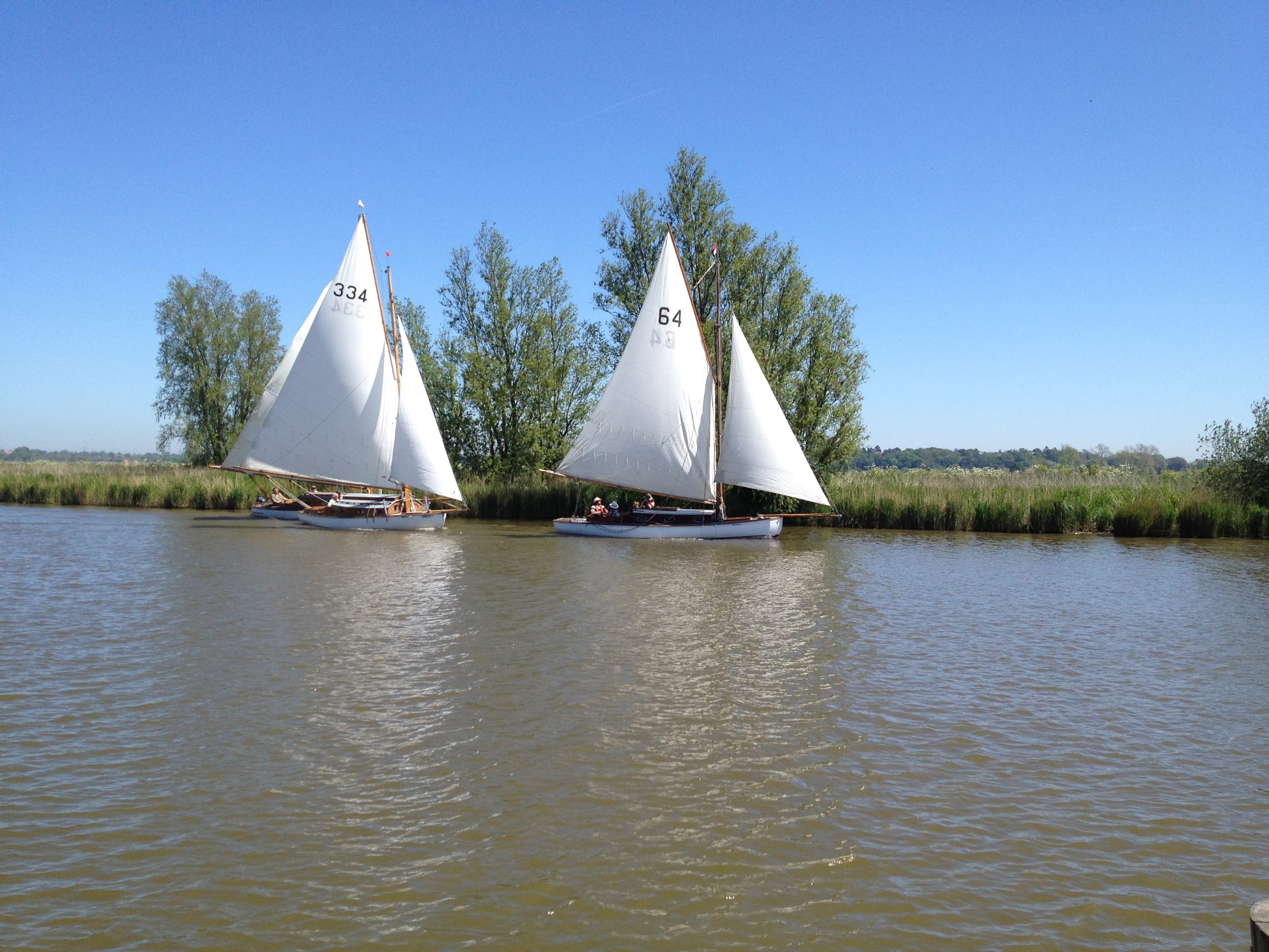 Until Horning, things were peaceful, then the usual melee of day boats, tour boats, hire boats, swans, fisherman & miscellaneous craft provided a hair-raising sail for both boats!