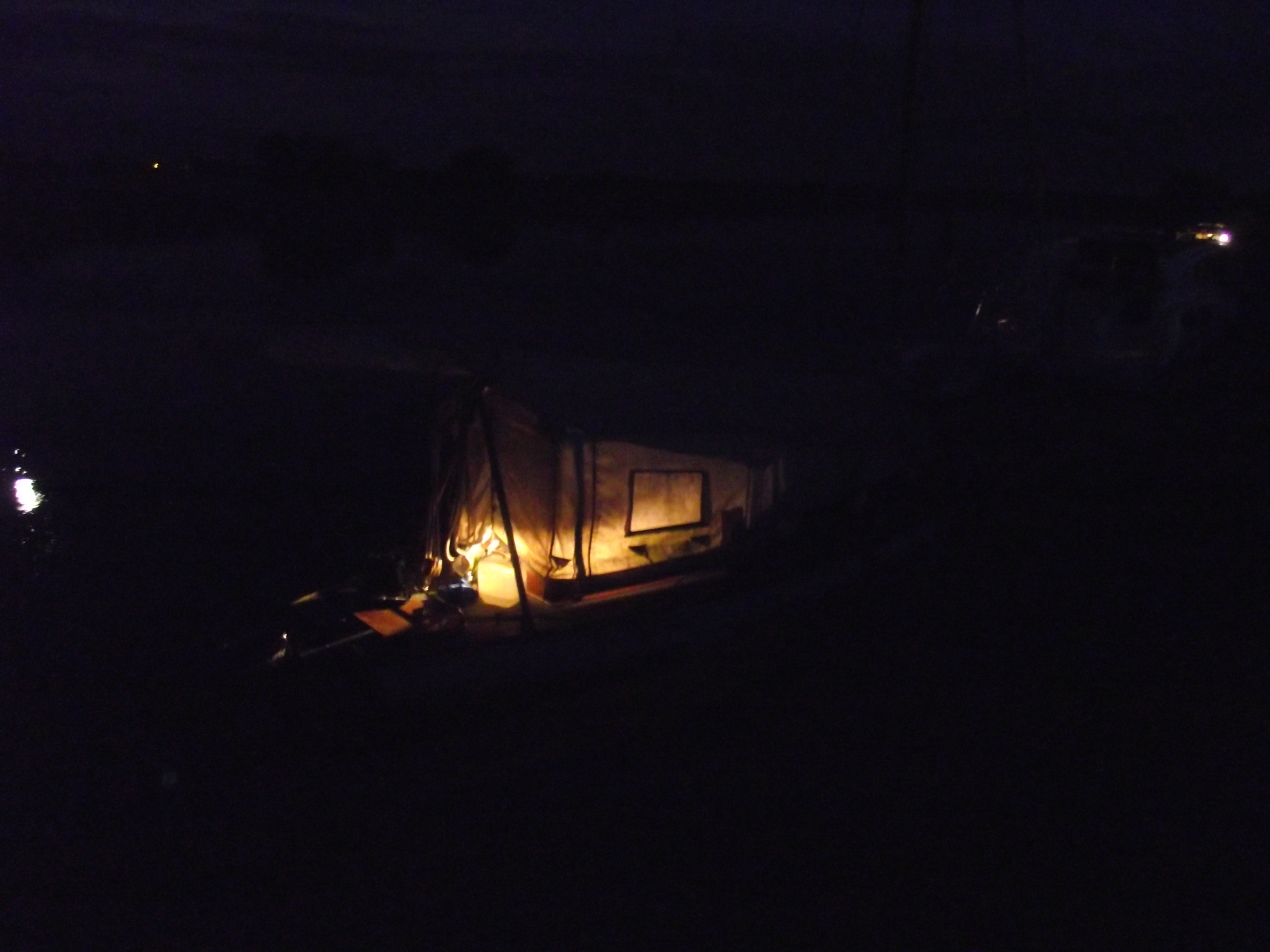 9.30pm… it’s pitch black, and we’re quietly winding down… A motor boat is heard, heading up Heigham Sounds towards us… with a searchlight scanning the moorings (!)