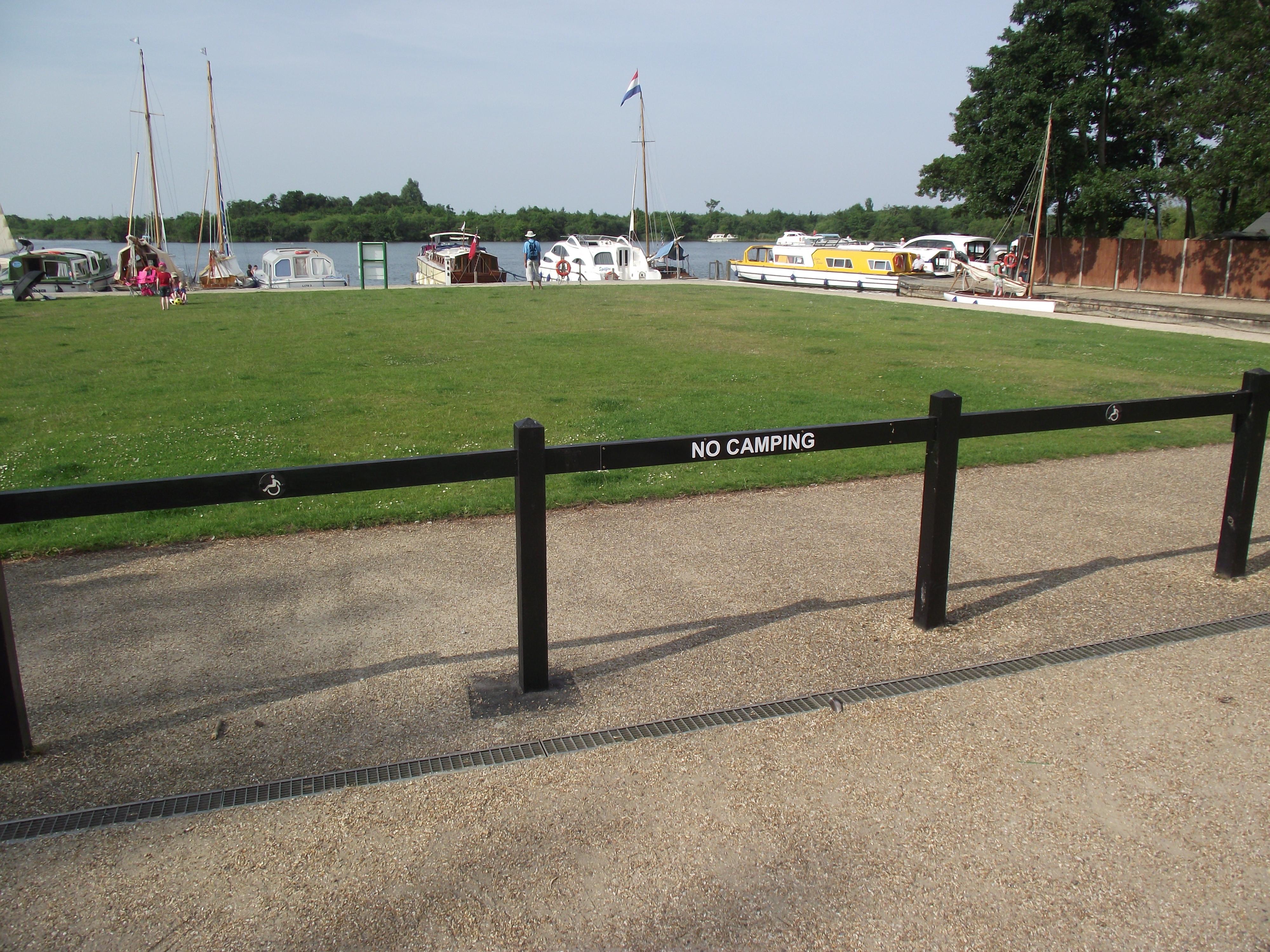 We found a neat ‘work around’ for the mooring fees at Salhouse – at that time there wasn’t a fee to mudweight, so we put ‘Corsair’ as close as we could to the beach & walked ashore! Also, we noted that when at Ranworth, there was a newly installed sign, declaring ‘NO CAMPING’ … Fame for our misdemeanours last year. (even now, I still smile when I see that sign).