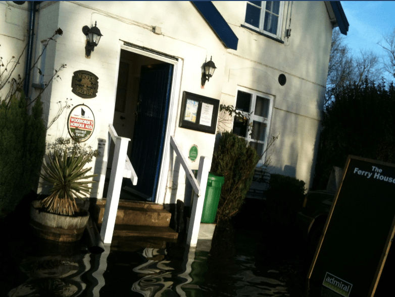 It was closed!! Thankfully we managed to persuade S the landlady we were thirsty & hungry – and very kindly she openedup – providing us with warming food & beer. I’d never seen the river this high – it was upto the front door!