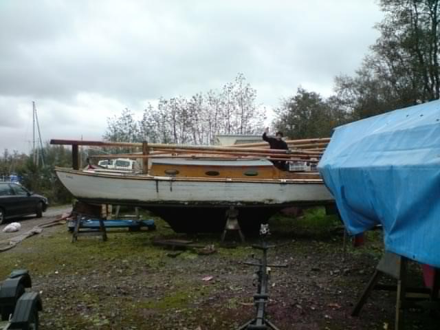 By December – we’d taken the unusual step of de-rigging ‘Corsair’ & having her ready to be craned out. Despite having endured a litany of criticism from the red-tape brigade last year, it appeared we’d be able to use the riverside pub as a winter storage / impromptu boatyard again. With that in mind, ‘Corsair’ suffered the ignominy of being towed upstream, derigged & deposited on the moorings the night before the Turkey Race.
