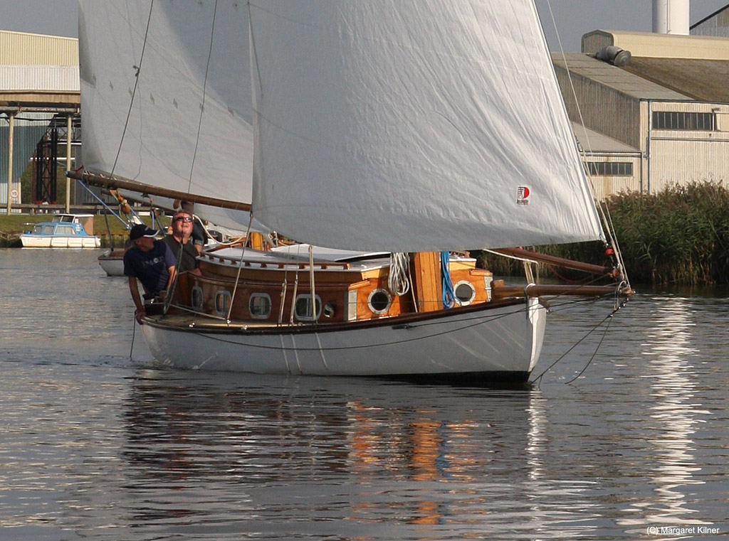 Whilst chatting, Gordon recounted how he quickly learnt how to sail ‘Hathor’ using the original pre-war cotton mainsail, until this disintegrated. She then became a houseboat, until saved by Peter Bower – founder of the current Wherry Yacht Charter Charitable Trust.