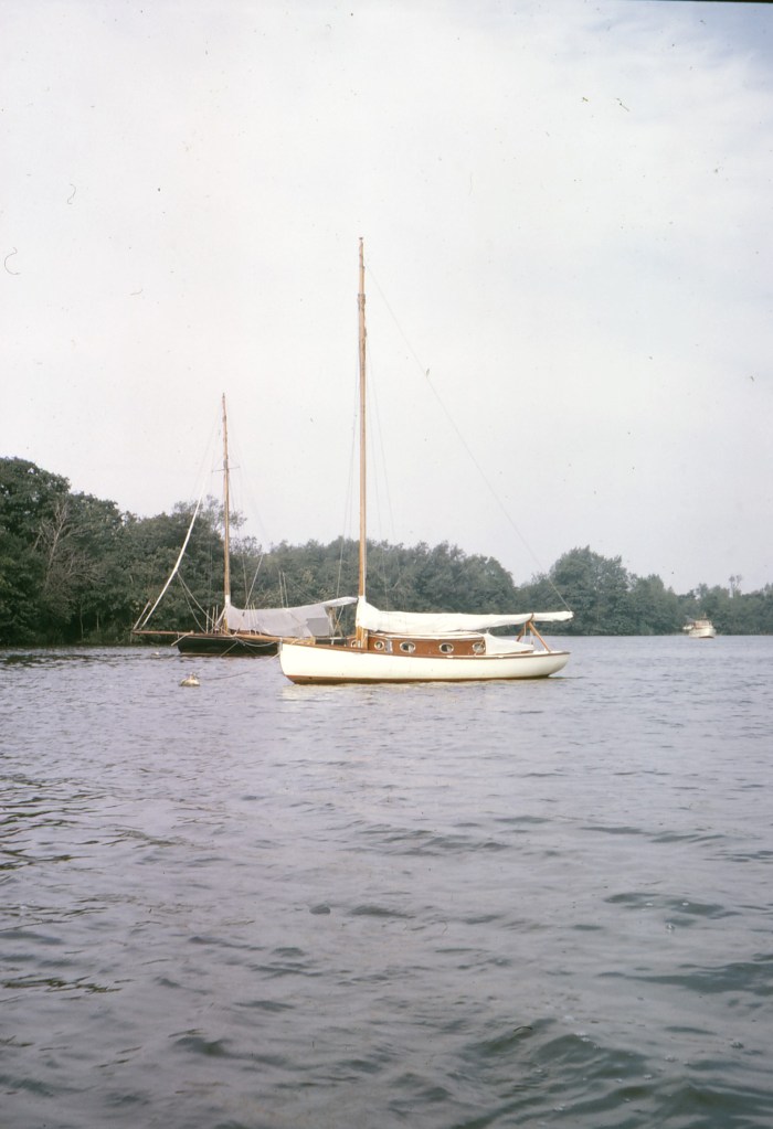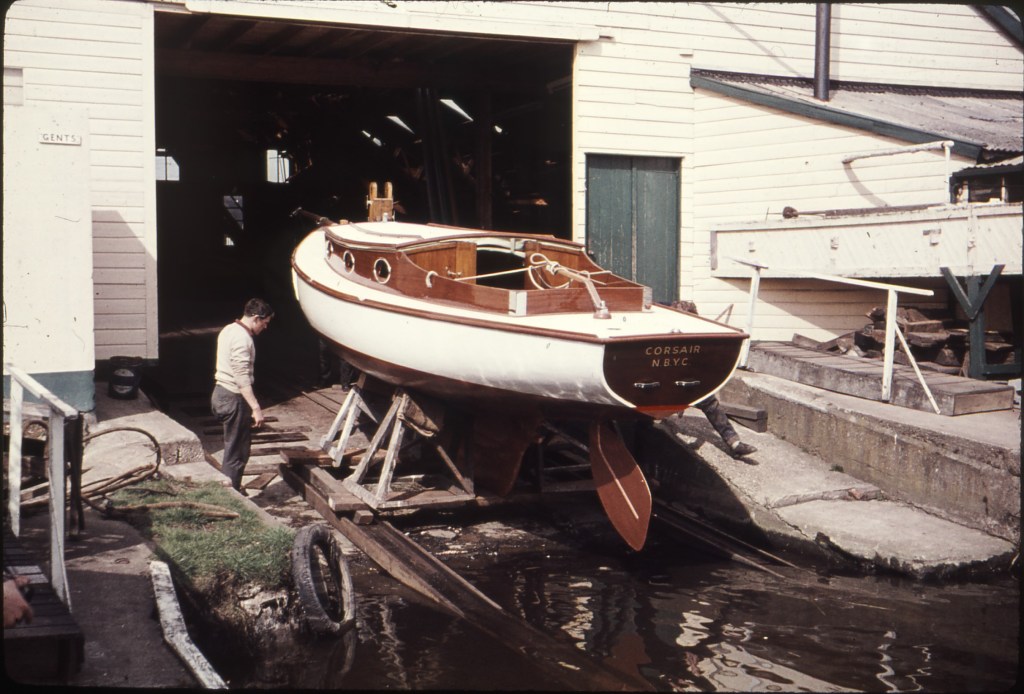 Sadly – Peter Olorenshaw died in 1990, and a conversation with his widow Elizabeth just elicited the information that they didn’t own the boat for very long at all. ‘Corsair’ was ignominiously placed on the bank at Brundall – in a boat auction.