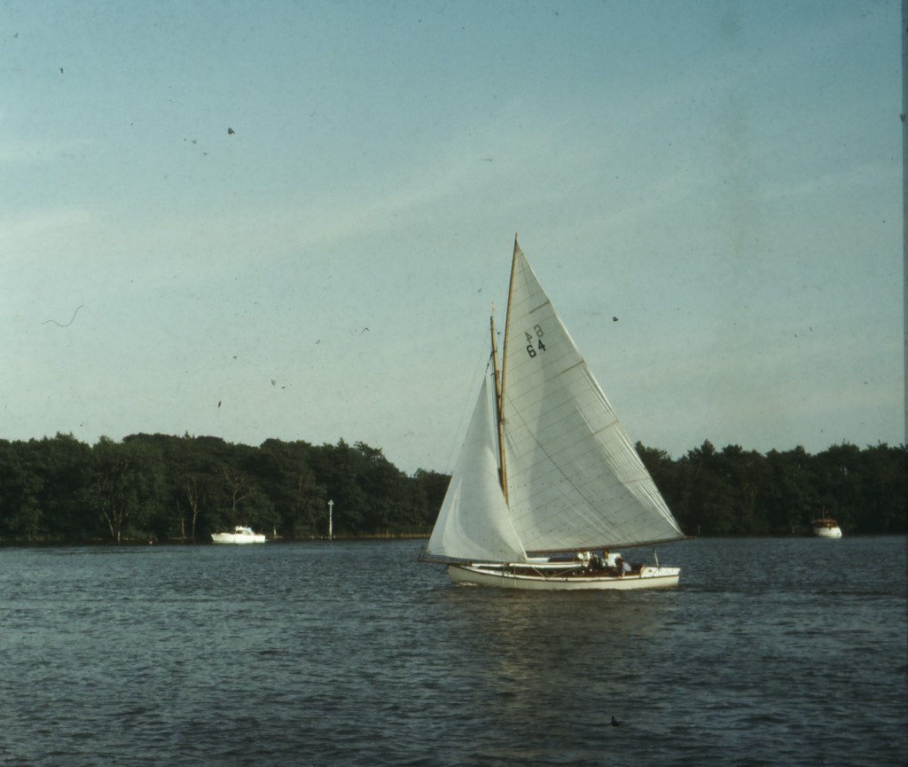 Several local boatyards moved decisively – Martham Boats snatched up the Rangers, the Clippers and the Wenonahs. Tim Whelpton (her builder) bought the Elfs and the Imps from Chumley & Hawke, to start his own hire fleet at Upton.