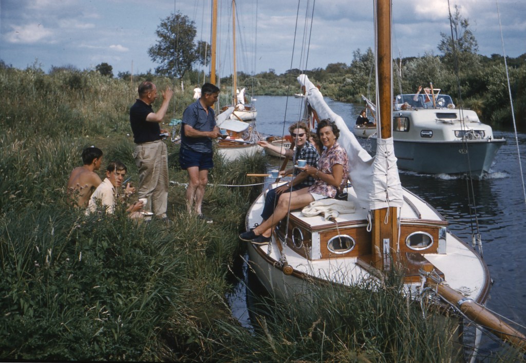 The format of their holidays was quite simple, the Oliver family would drive from Birmingham, get aboard ‘Privateer’ & head to Hickling Broad in company with some other yachts, including 1 or 2 from Hunter’s yard at Ludham.