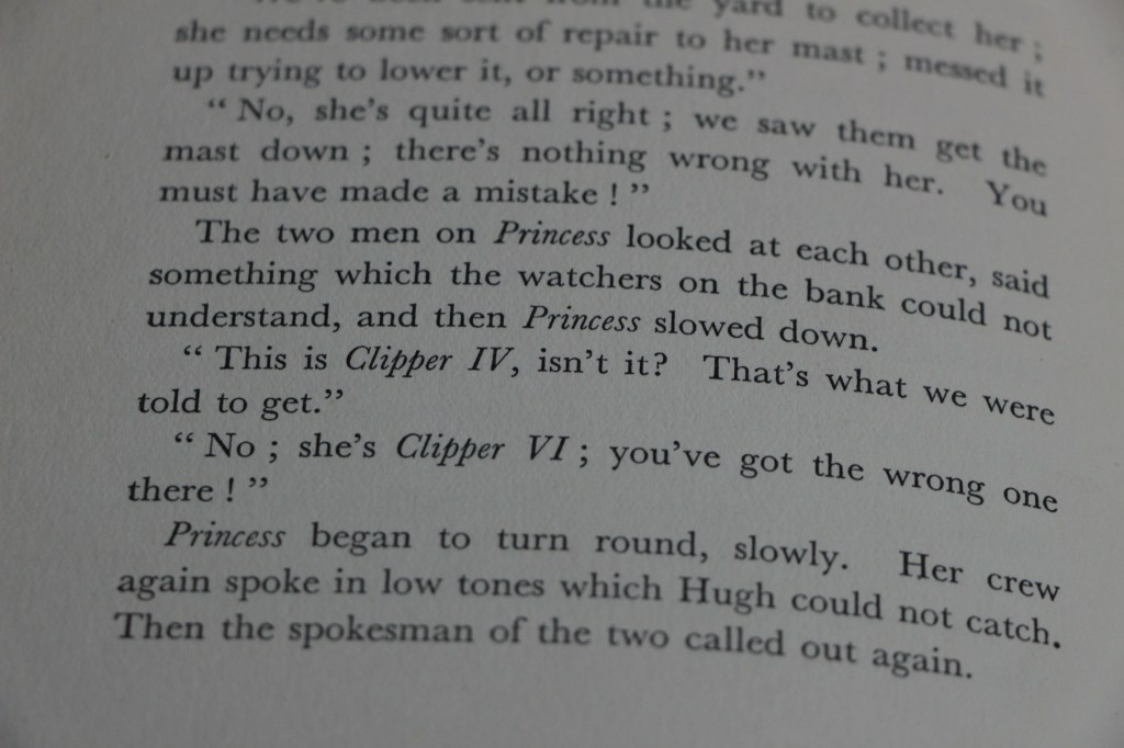 Unforgivably – they piled into the dinghy, and rowed to the ‘Star Hotel’ on Yarmouth quayside. Where upon they calmly telephone Chumley & Hawke – informed them where ‘Privateer’ was, and curtailed their holiday by getting on a train, pronto.