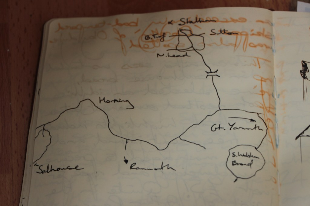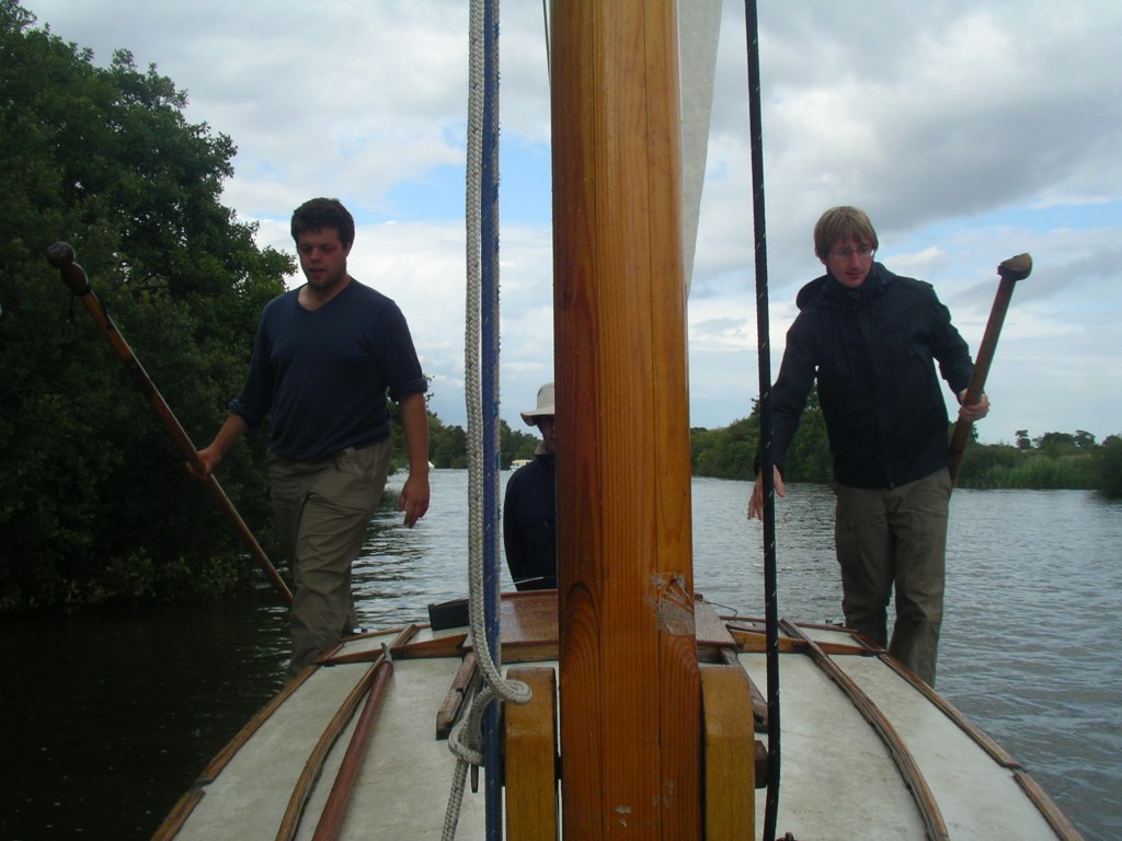 Tat from the gift shop duly purchased, we had a furry spider and a Fox finger puppet aboard, as we set-sail with full rig for the first time 5 days sailing! A gentle drift was interspersed with a quick spot of lumber-jacking with the gaff on unsuspecting trees, and a whistling competition on South Walsham Broad – to rustle up a breeze.