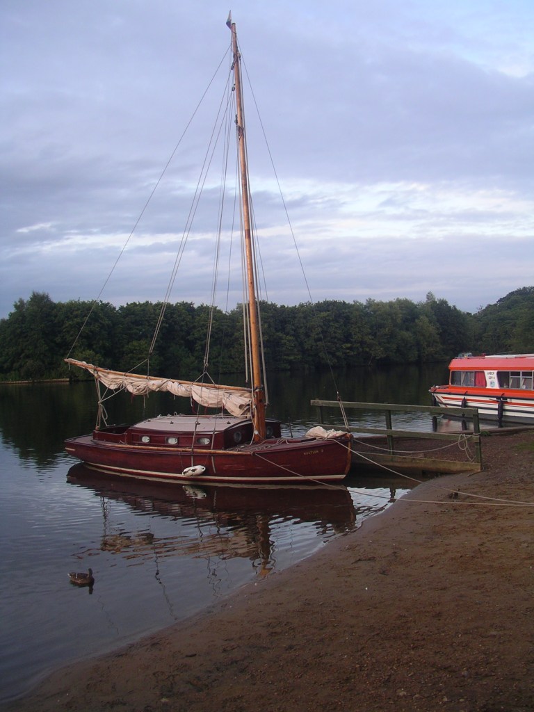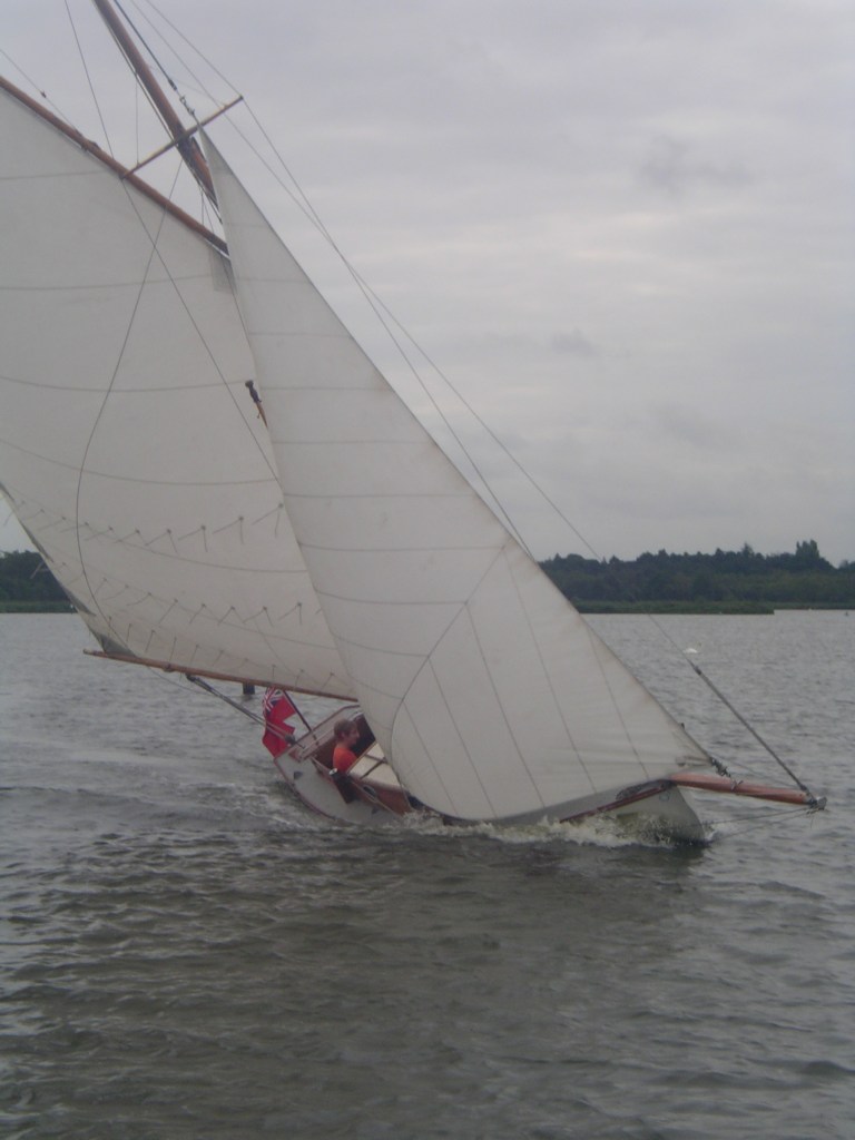 This proved the most enjoyable sail of the week thus far. We soared across Wroxham Broad where we saw ‘Chatterbox’ – a gorgeous lugsail dinghy built in 1900, and reputed to be the prototype of the Norfolk ‘Dumpling’ class. We also saw wherries ‘Ardea’ & ‘Solace’. It was starting to feel like a holiday!