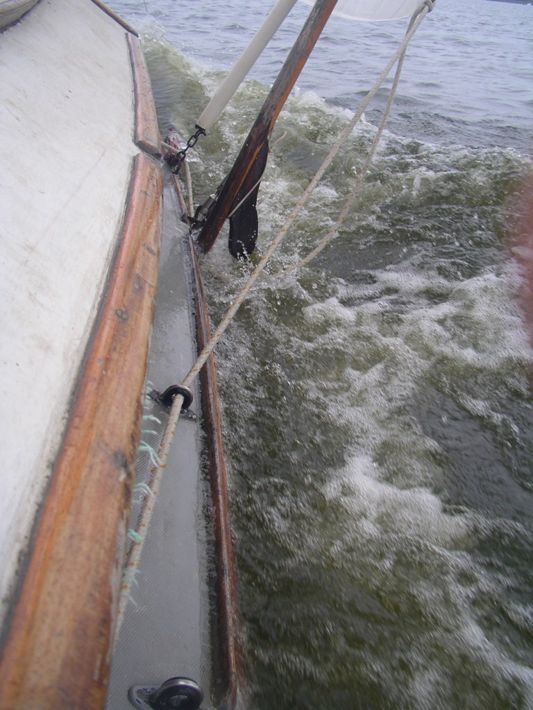 As the afternoon progress, the wind dropped, even to the extent that a reef was shaken out, although when sailing through Horning Street the passing showers did force several crew members to retire to the cabin.
