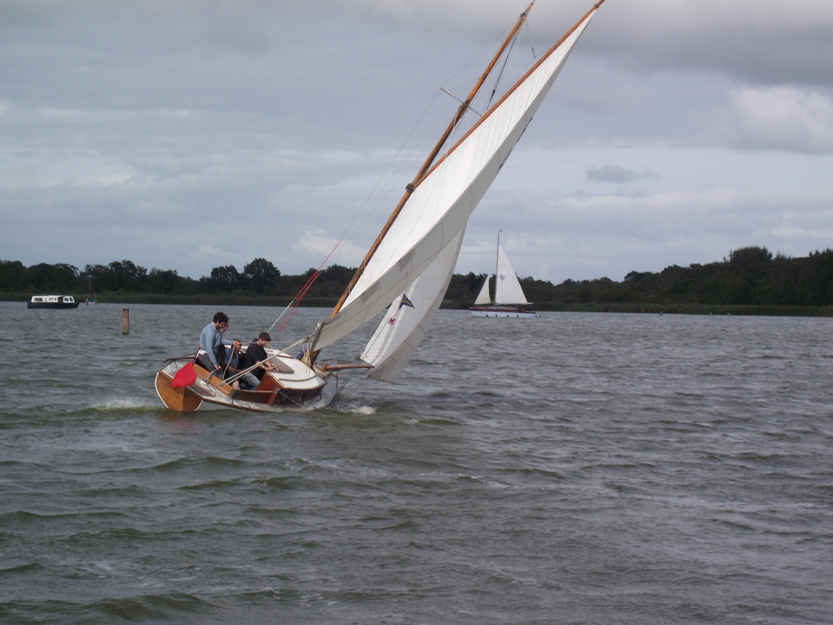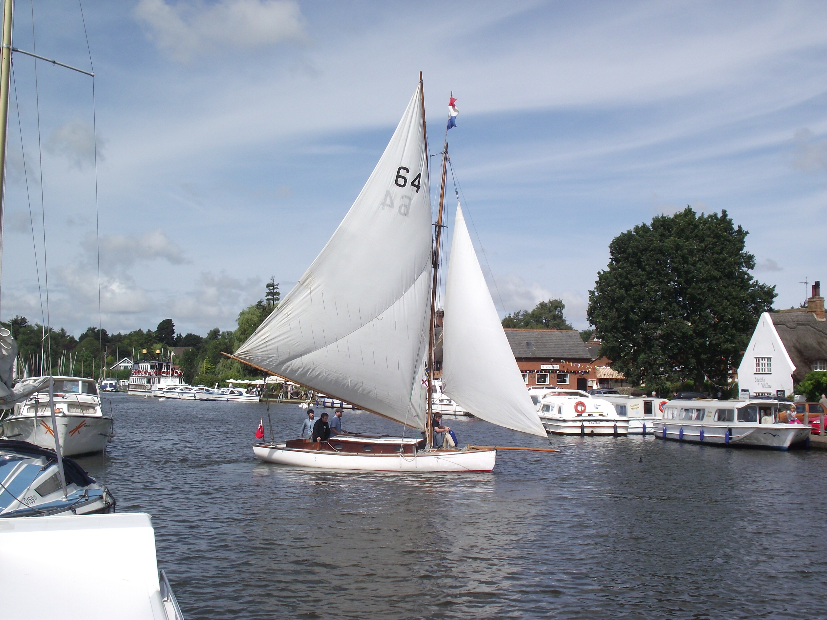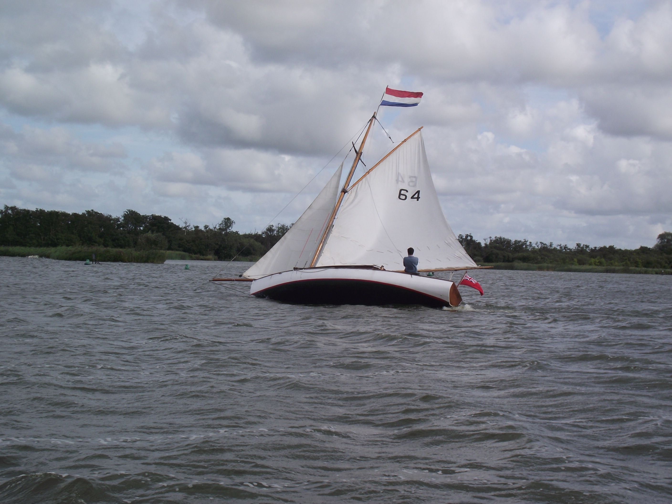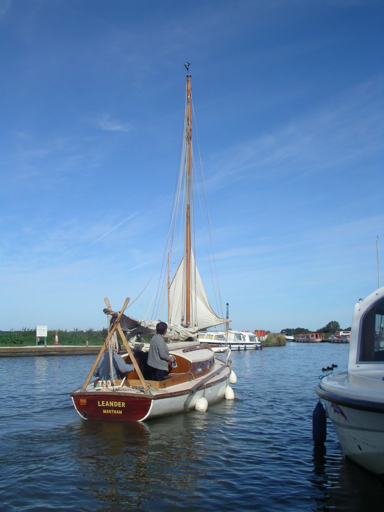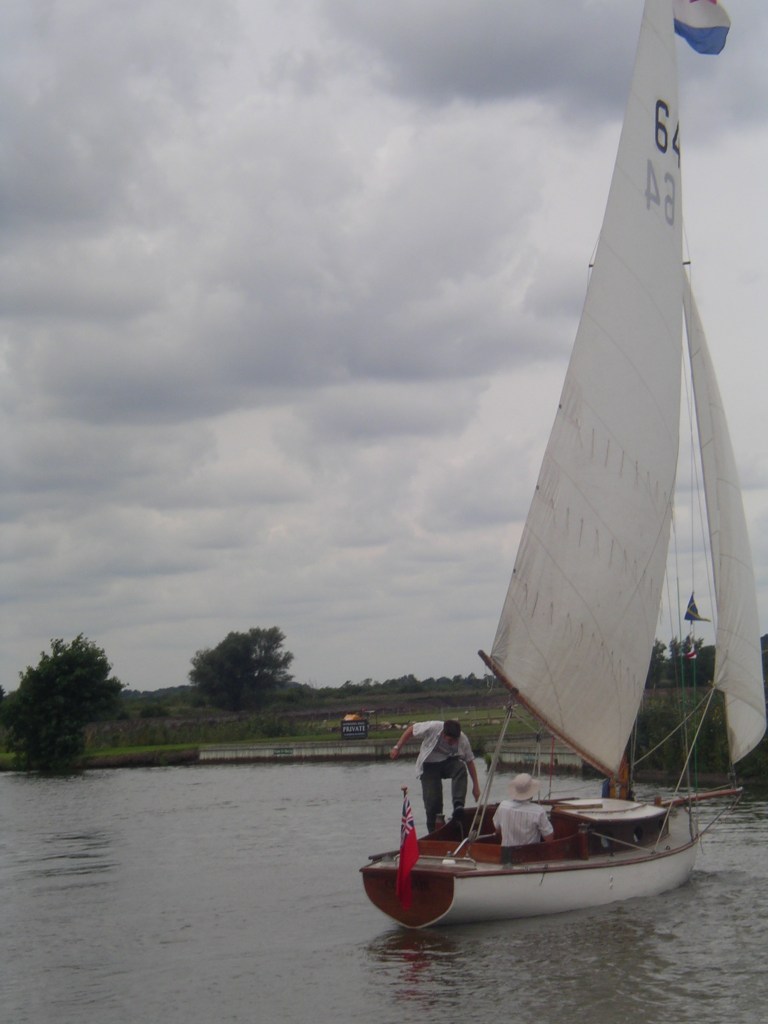 Leaving Potter with a double reefed mainsail proved a sensible decision, as before the arrival of yet another rain shower – some strong gusts forced us into rigging the backstays & praying… once at Cold Harbour however we eased onto a broad reach that lasted until Acle.
