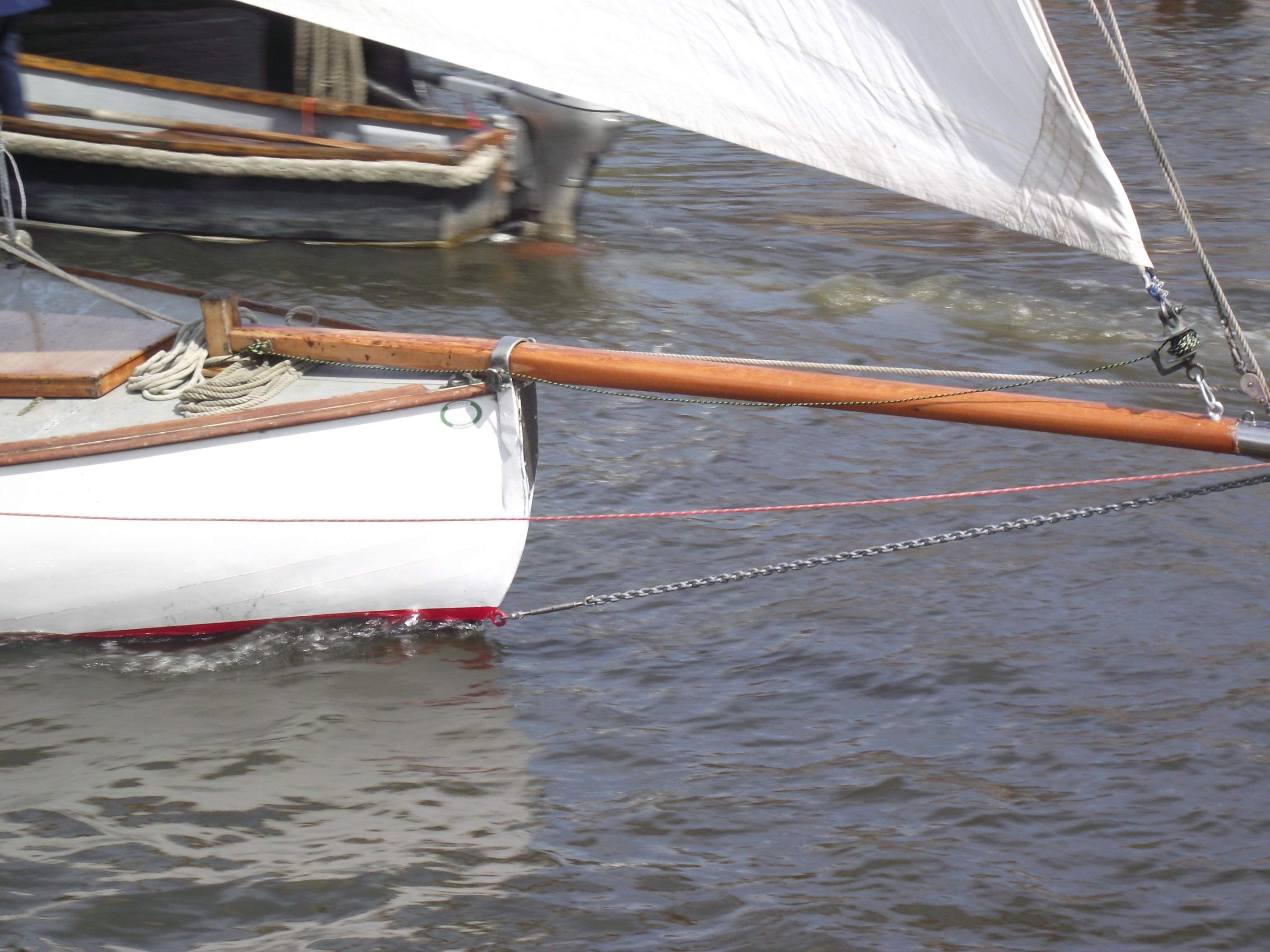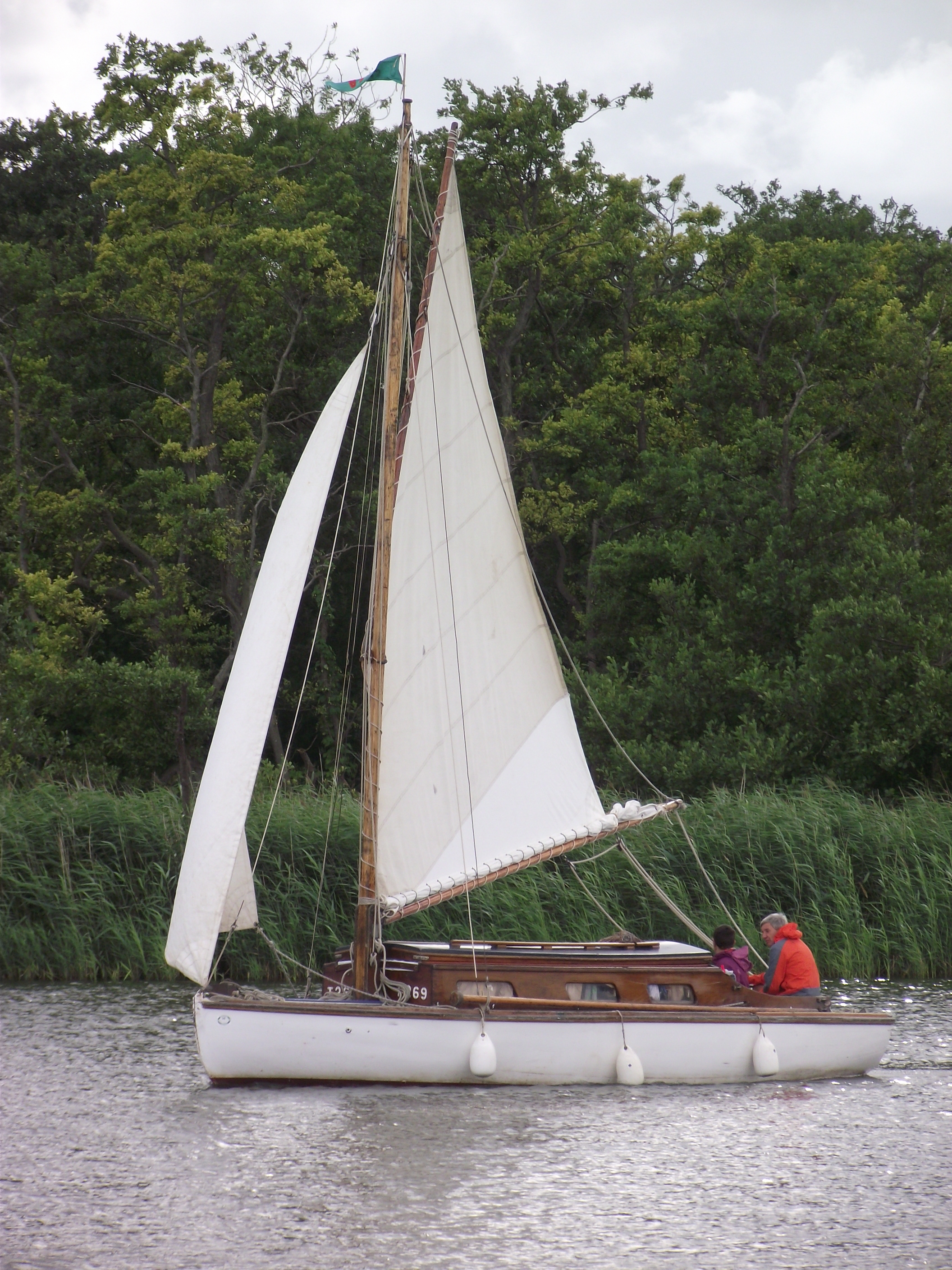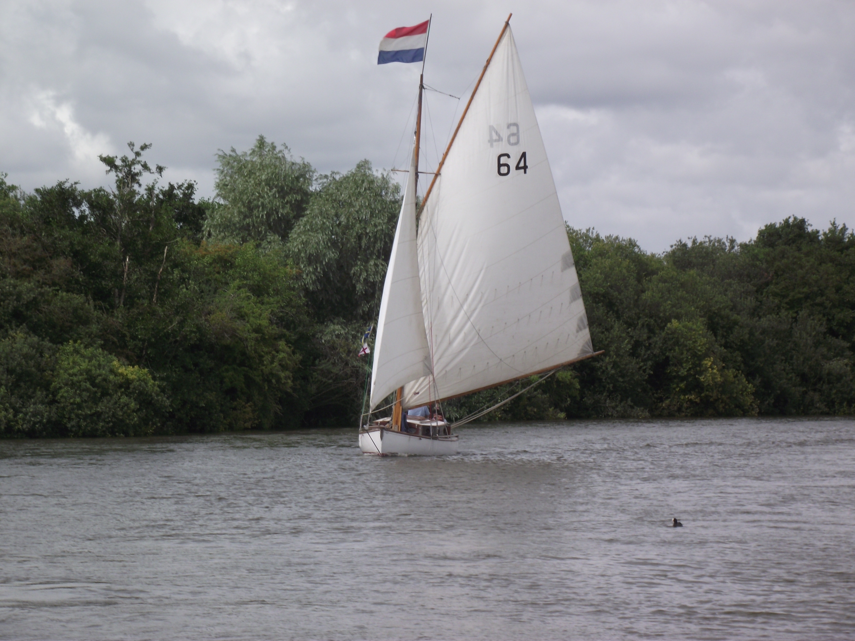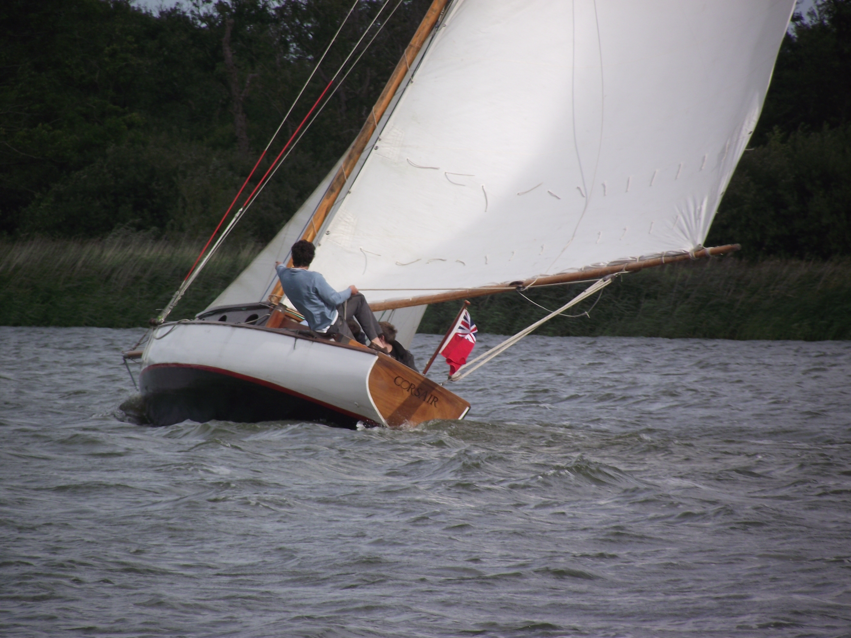 Leaving Potter with a double reefed mainsail proved a sensible decision, as before the arrival of yet another rain shower – some strong gusts forced us into rigging the backstays & praying… once at Cold Harbour however we eased onto a broad reach that lasted until Acle.