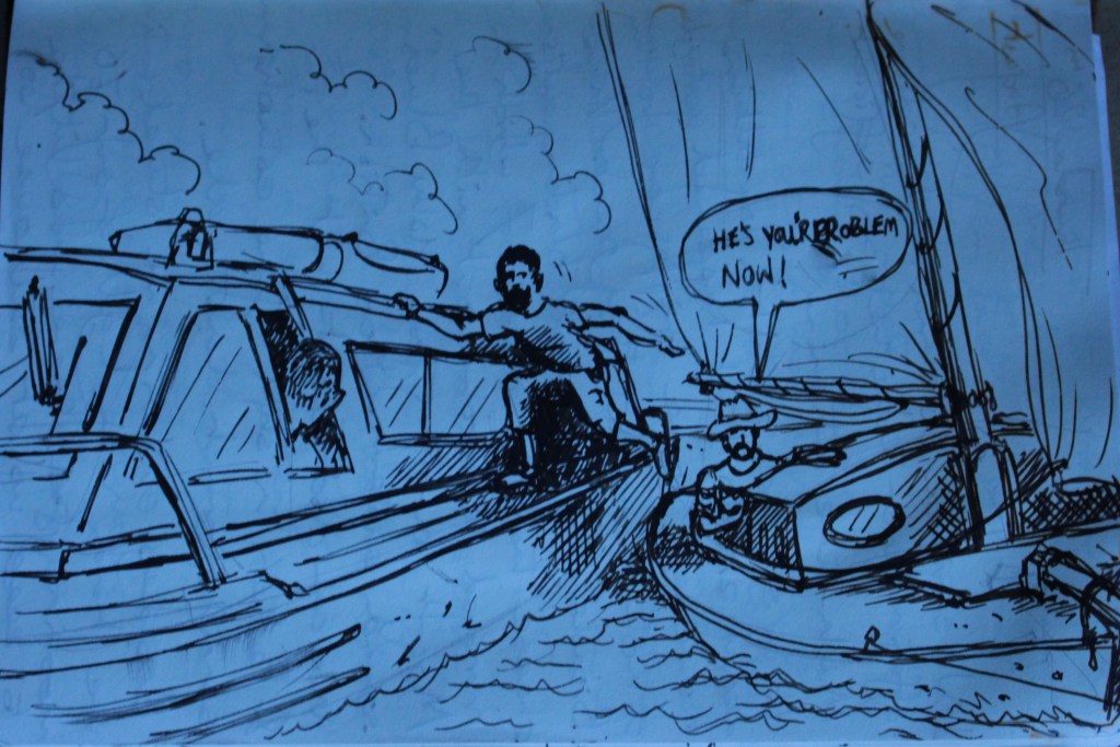 Returning to the boats, we found a welcome late-visitor in the form of ‘Polly’ – Hooray! much, much alcohol was then consumed to celebrate this, and we fell into a stupor, under the steady monotone of rain on canvas…