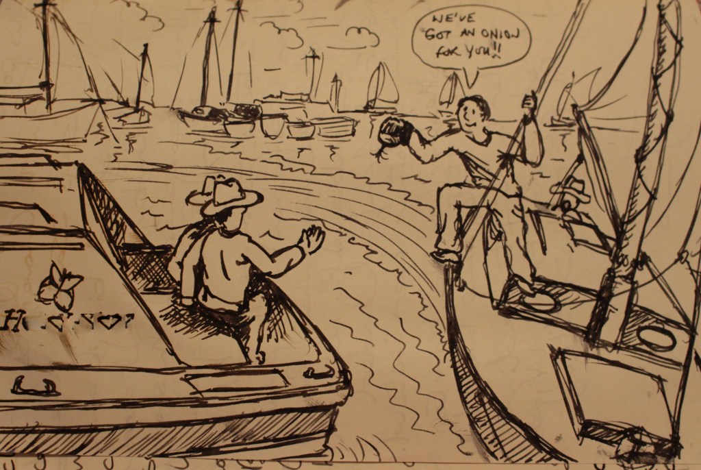 Eff me. We overtook, we undertook, and sometimes we plain bullied out way past boats and tried not to think what’d happen if the mast broke. At How Hill we observed a ‘twister’ running down the marsh – which mercifully avoided us.