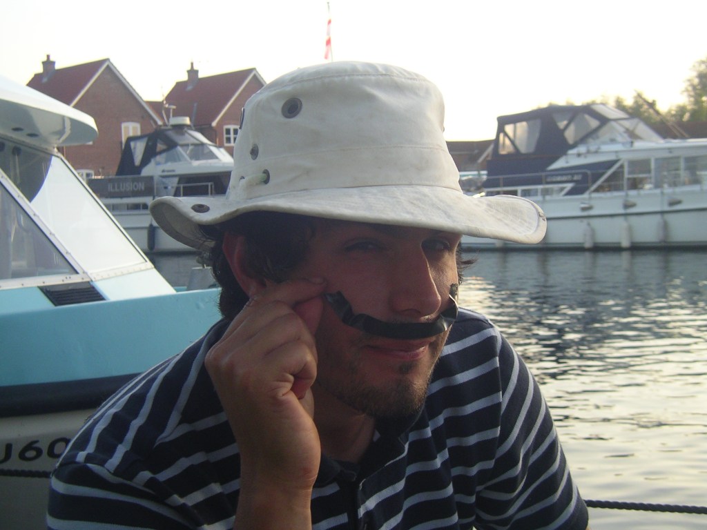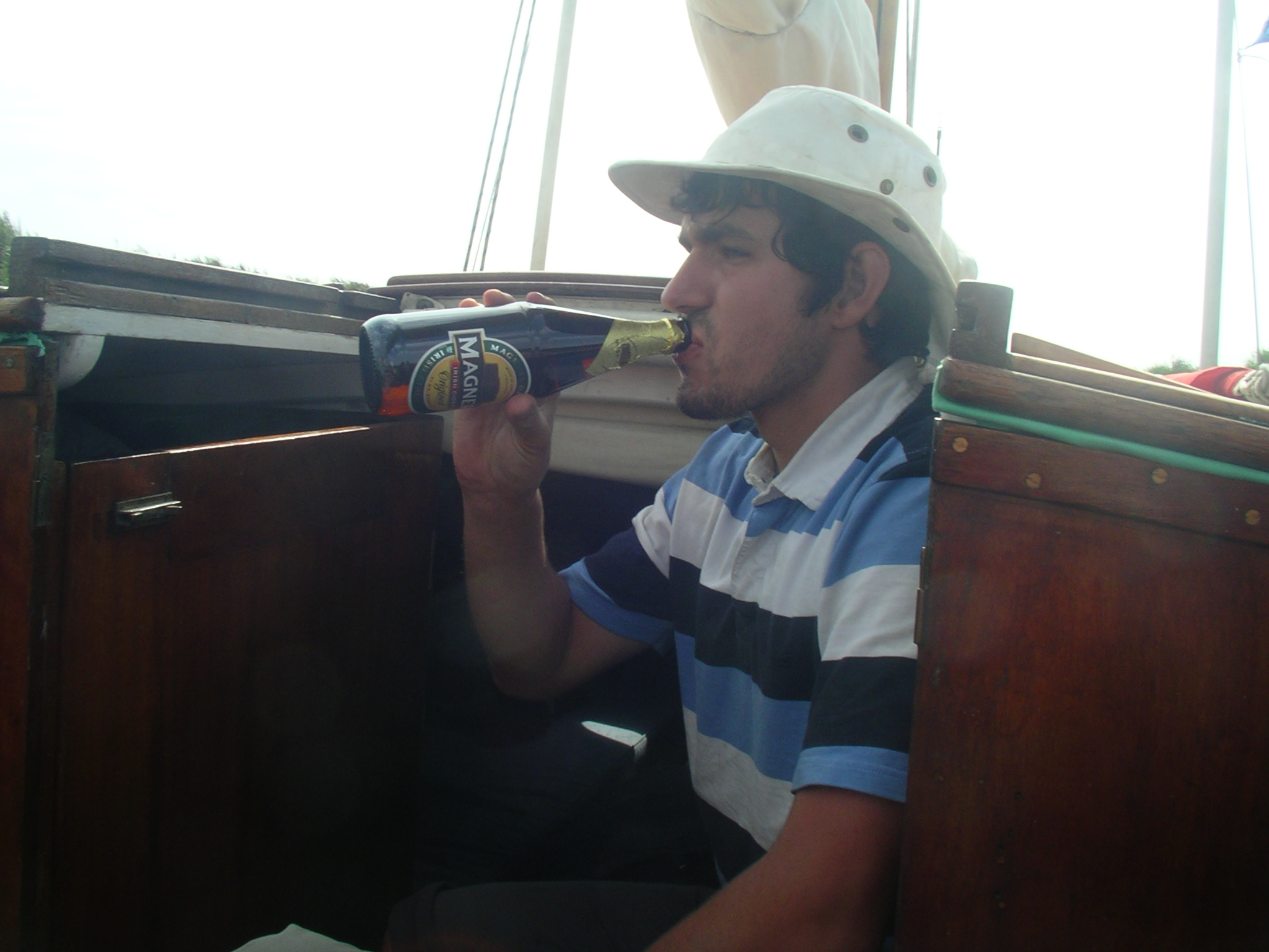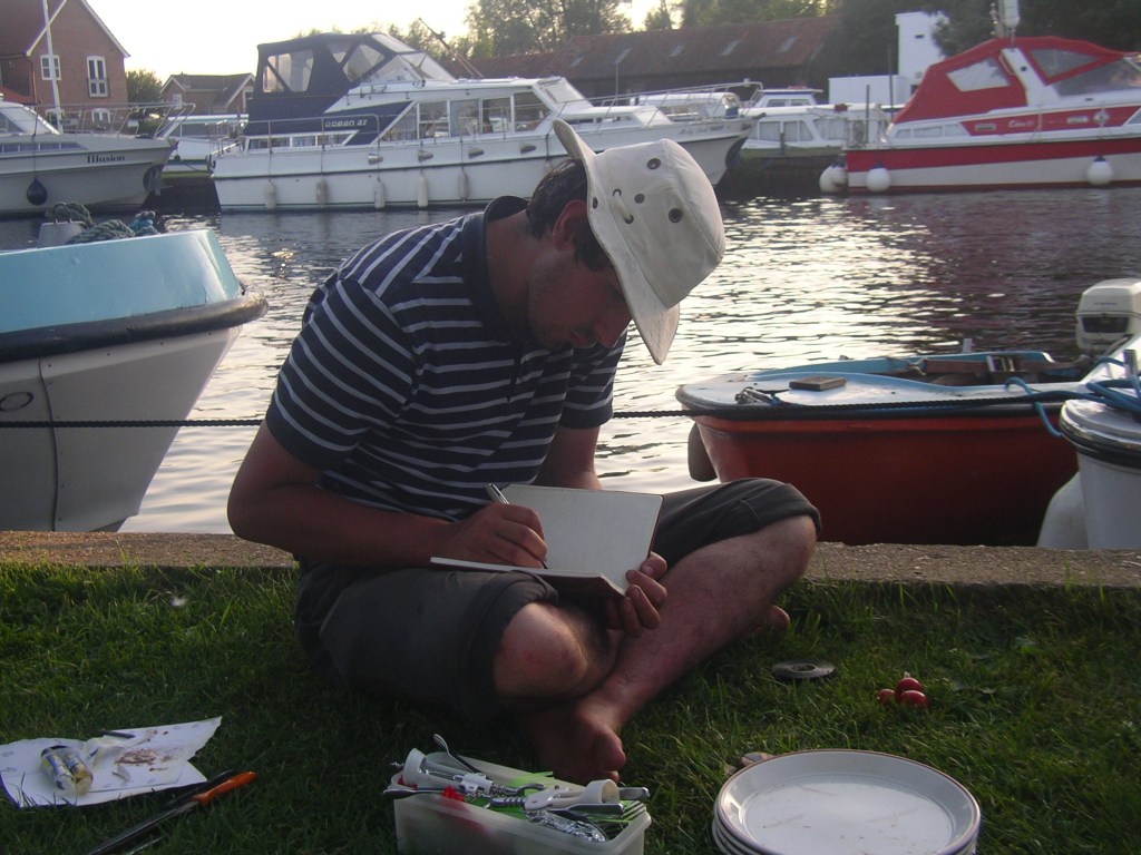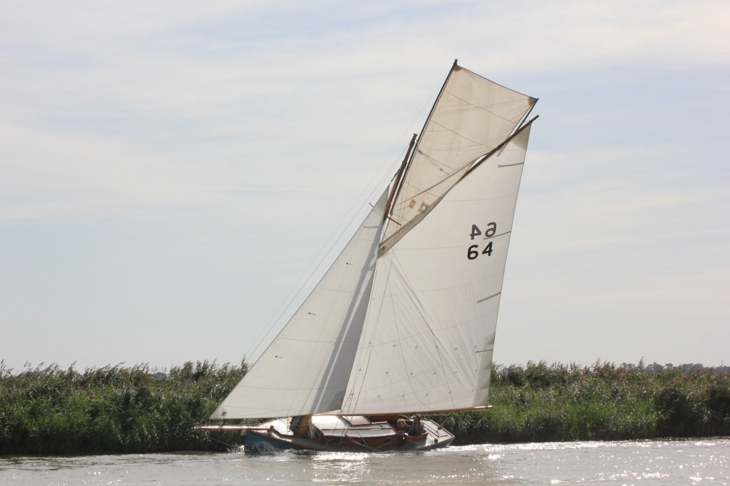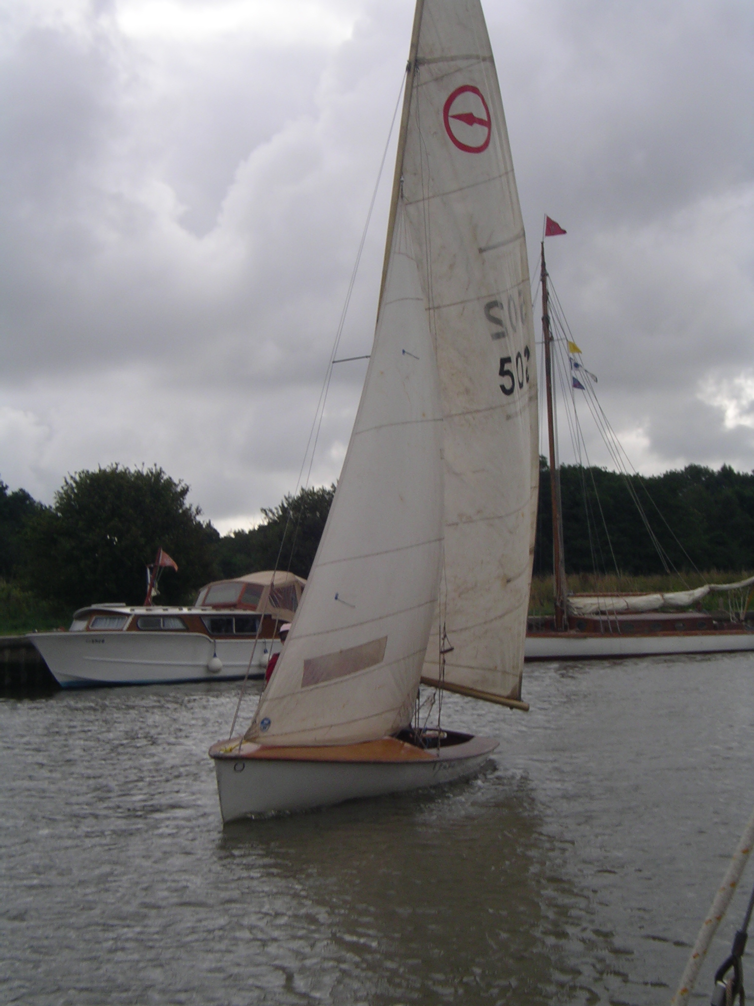 Eventually, ‘Corsair’ reached Surlingham Ferry – we had to find the edge of the moorings using the quant as a depth sounder (falling in would have been a bad idea!) – and again, we tied up on underwater mooring posts, stuck our quant in to stop her over-riding the bank, and waded to the pub.