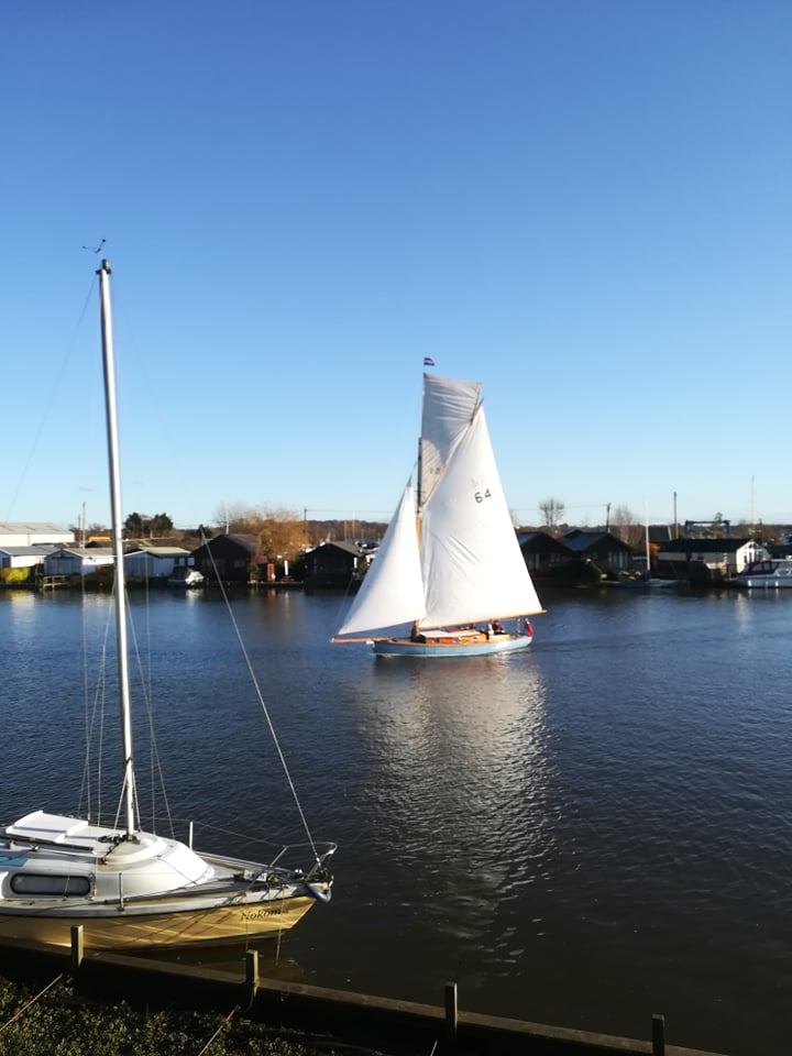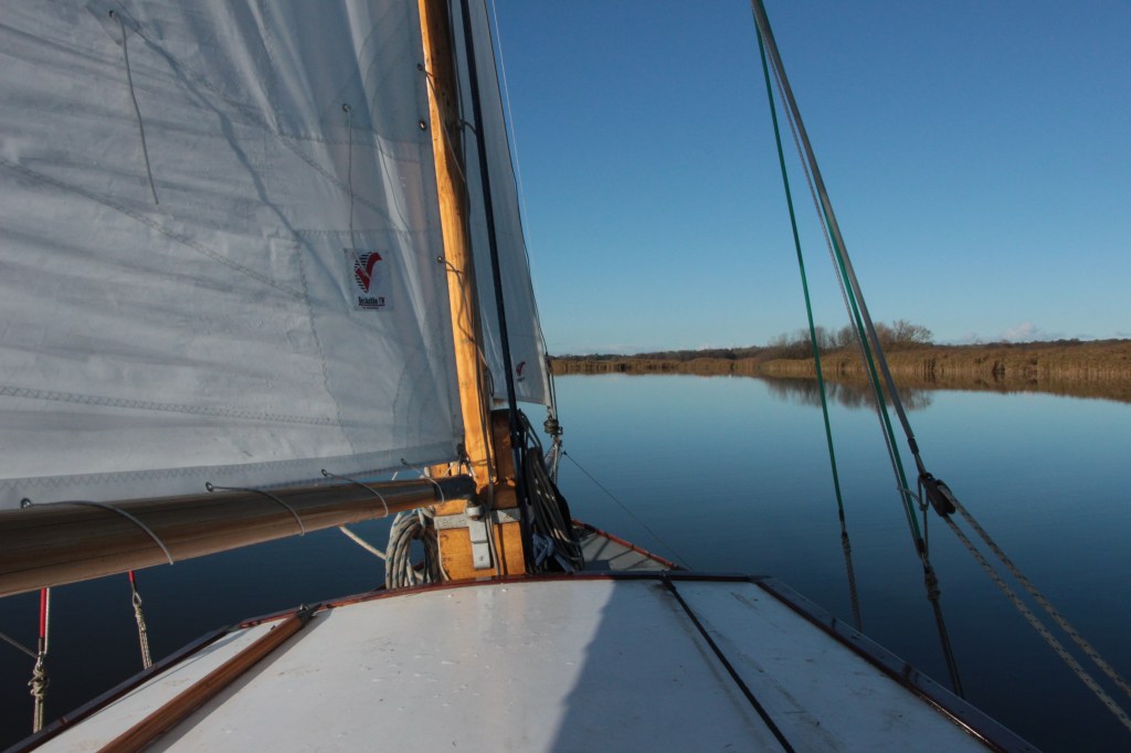 Whilst enjoyable, the predominant memory of the 2012 cruise is that as we were tacking into Beccles in light airs, our 1951 boom decided to snap directly above the mainsheet blocks. This swiftly became a fairly stark lesson in how the mainsail on a Broads yacht can (and will) become uncontrollable – and how quickly a jib that’s sheeted in can push you into the bank, HARD.